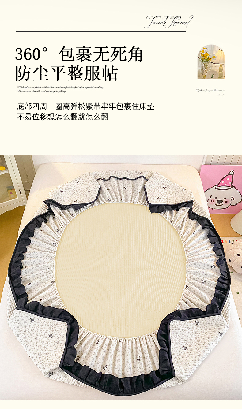 (总)布柔 2025新款加厚牛奶绒花边床笠保暖印花夹棉床笠床垫保护套罩,果绿,湖蓝,蝴蝶结米白,乐奇,蕾丝蝴蝶,莫里斯,嫩粉,水墨蝶影,碎花粉,碎花绿,碎花米,甜心比尔,樱桃狗,云灰