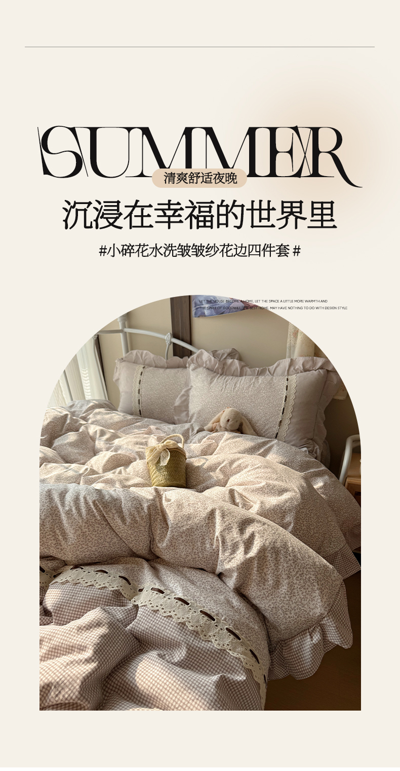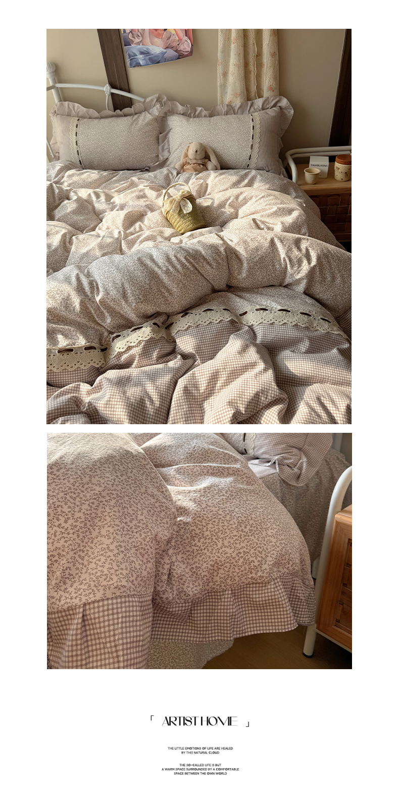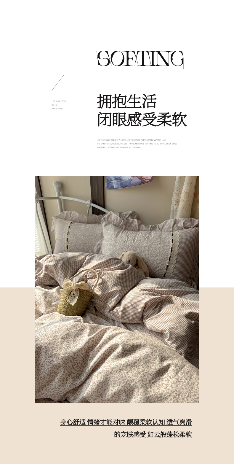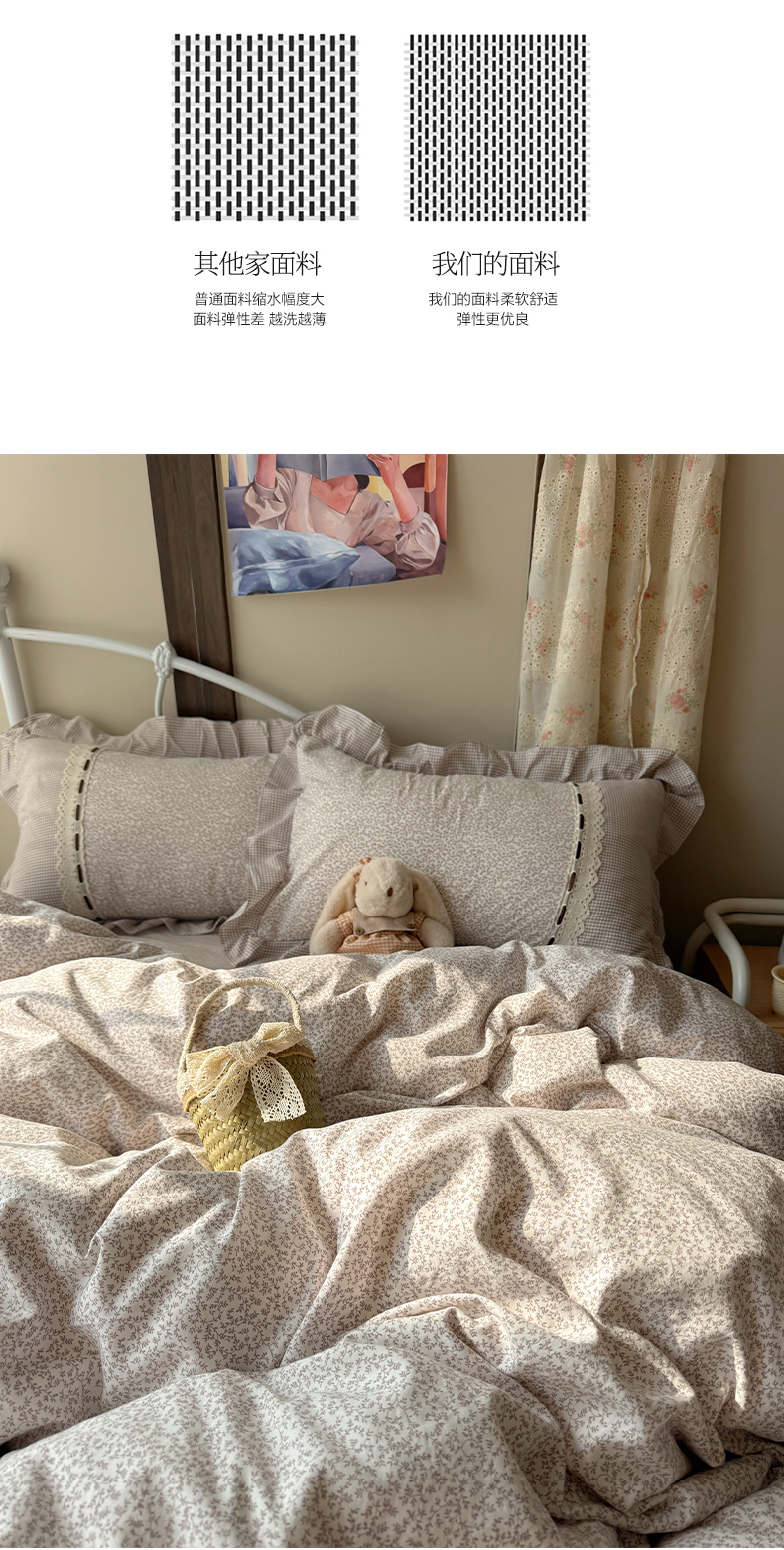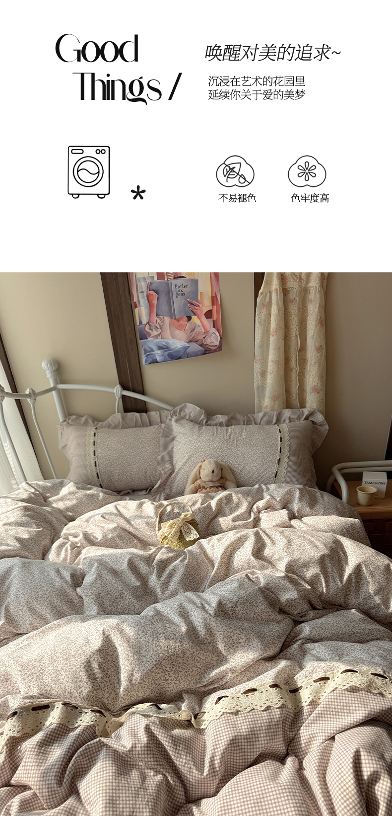 当前位置: 91家纺网 > 商品网购 > 床品套件 > 四件套 > 其它四件套 > 韩都家居 2026春夏新款韩式小碎花水洗古棉花边四件套 秘境-浅咖