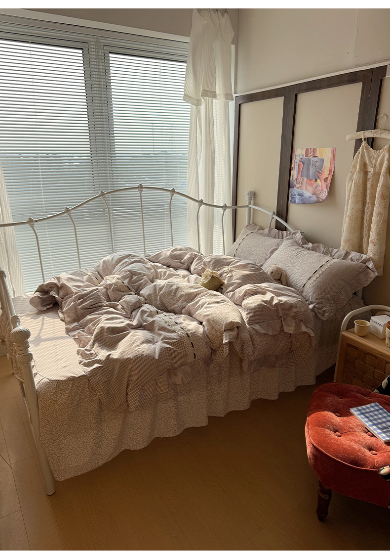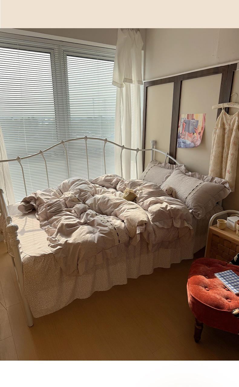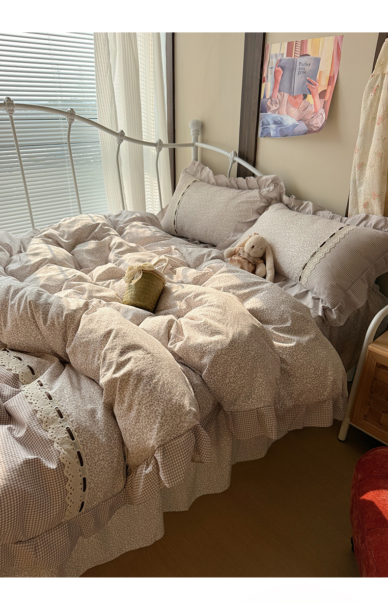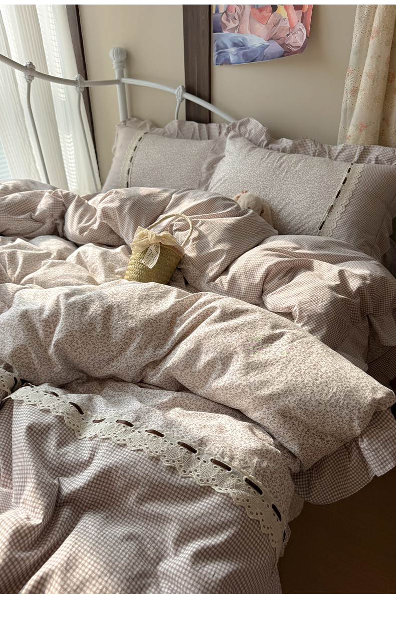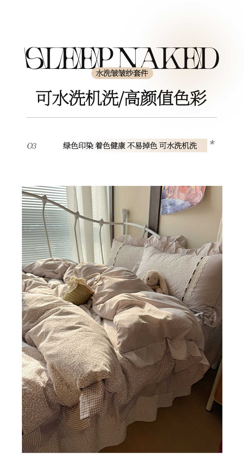 当前位置: 91家纺网 > 商品网购 > 床品套件 > 四件套 > 其它四件套 > 韩都家居 2026春夏新款韩式小碎花水洗古棉花边四件套 秘境-浅咖