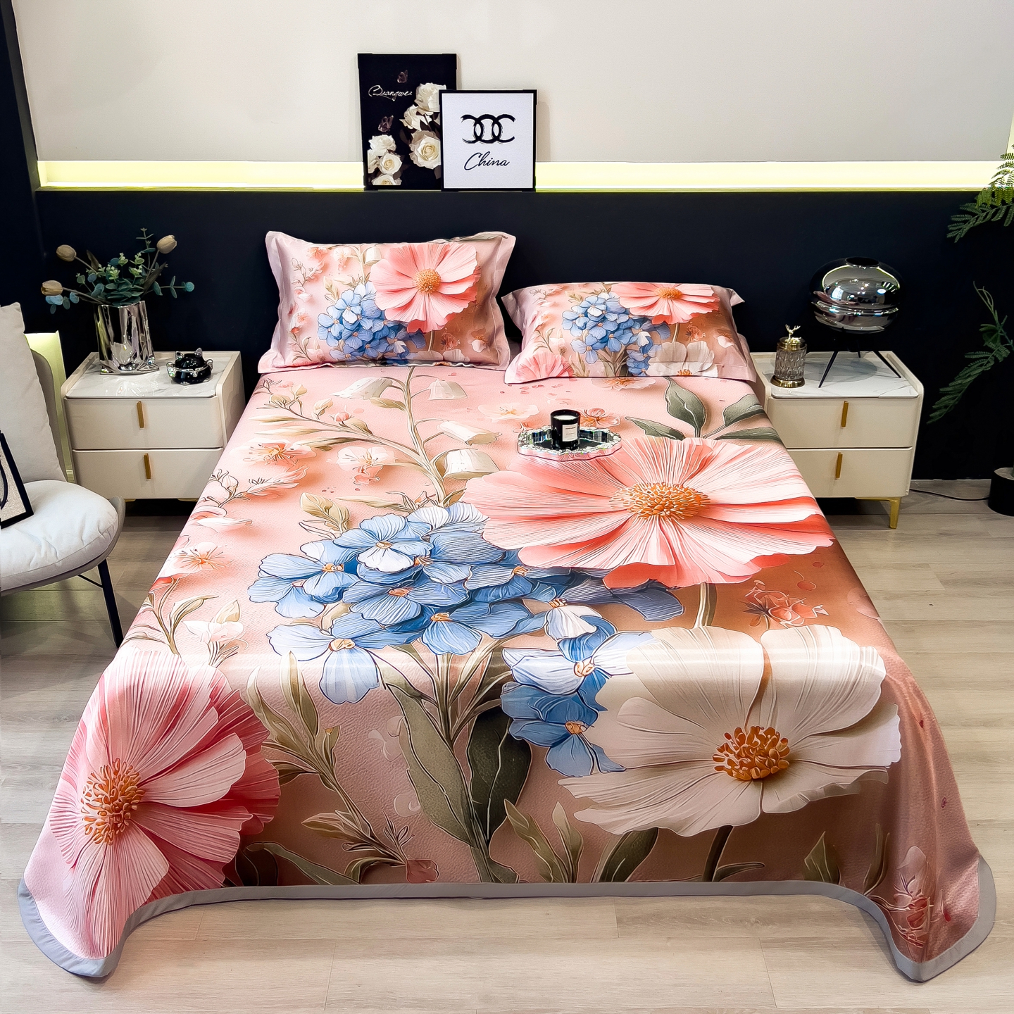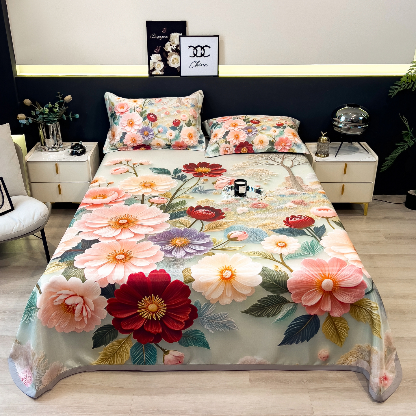(总)梵克保罗 2026春夏新款数码印花大版高克重冰丝凉席三件套,花楹,孔雀,绿野晴风,曼陀罗,牡丹,浅朵,四季花,夏木,星空幻想