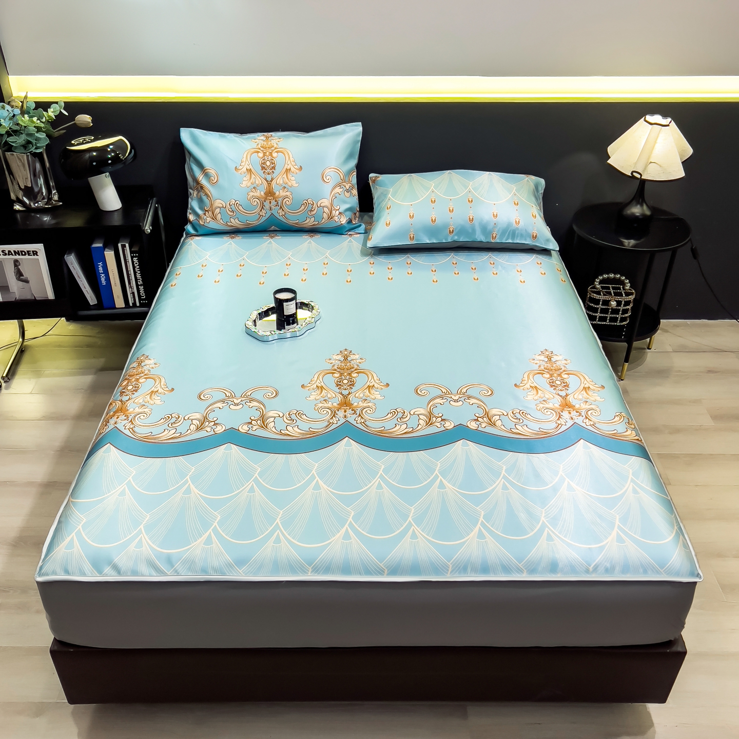 商品名称:梵克保罗 2026春夏新款数码印花大版高克重冰丝凉席床笠款三件套 时见