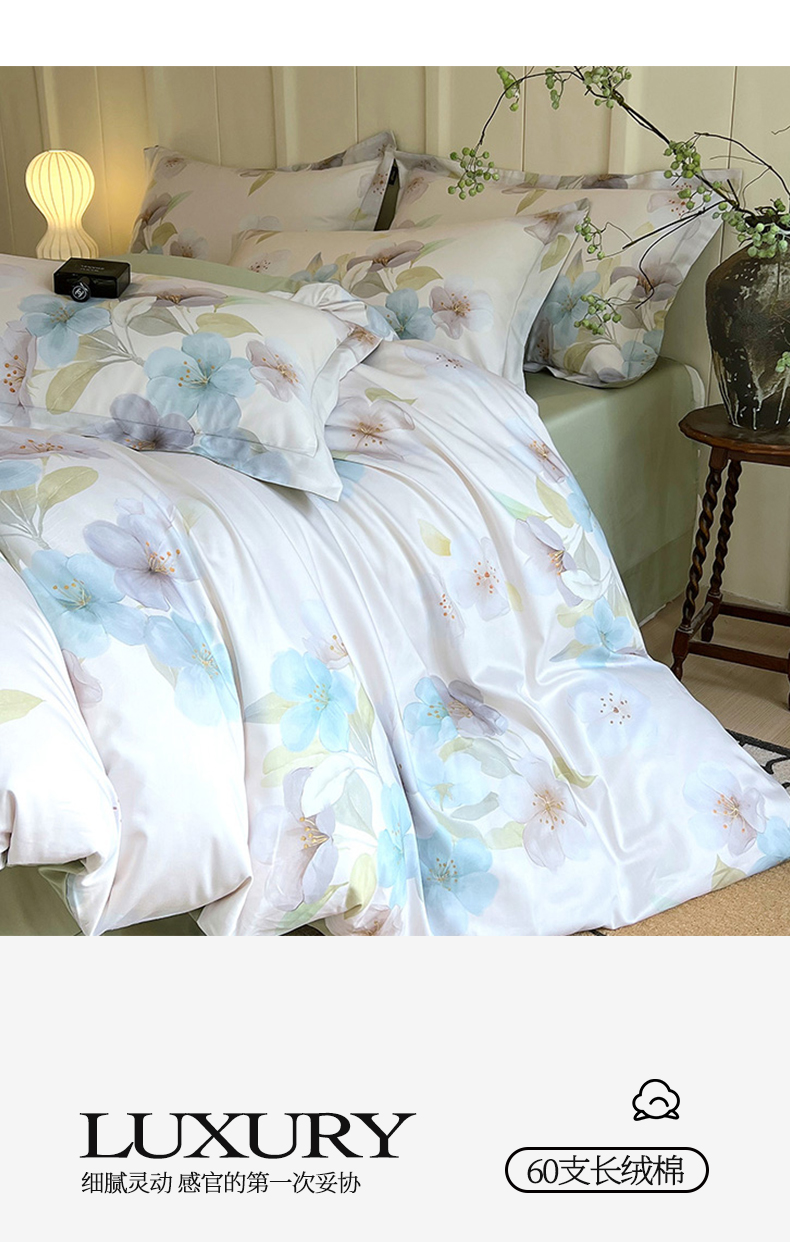 帅露家纺 2026新款全棉60支长绒棉数码印花四件套 岚山梦