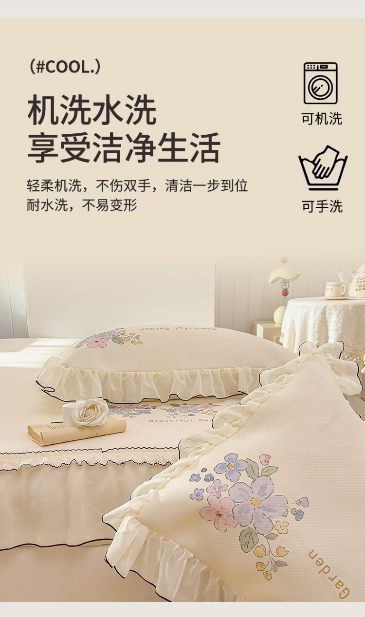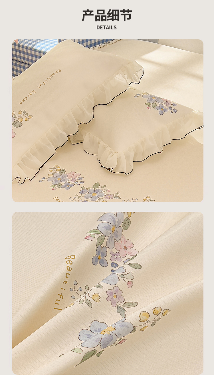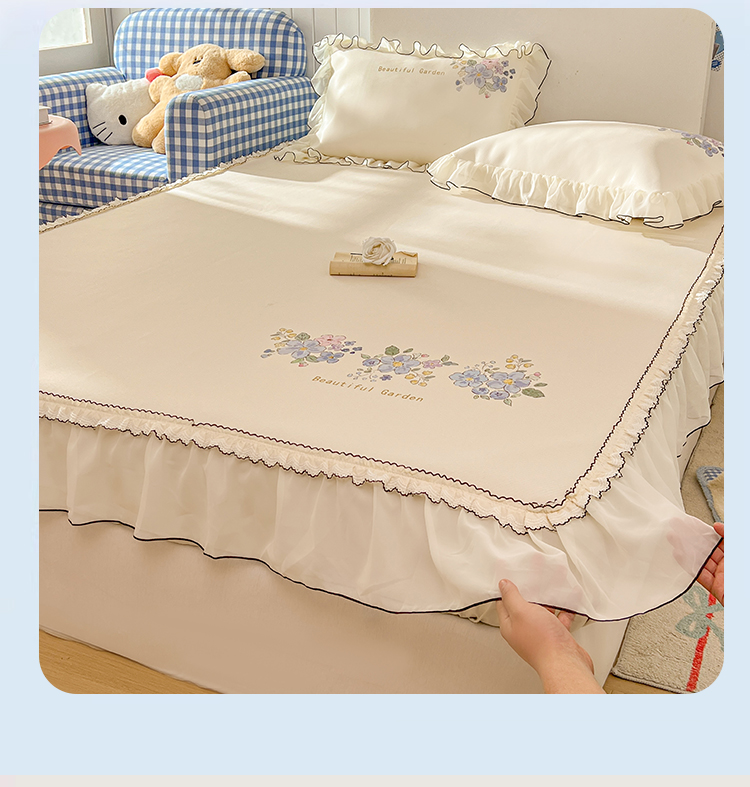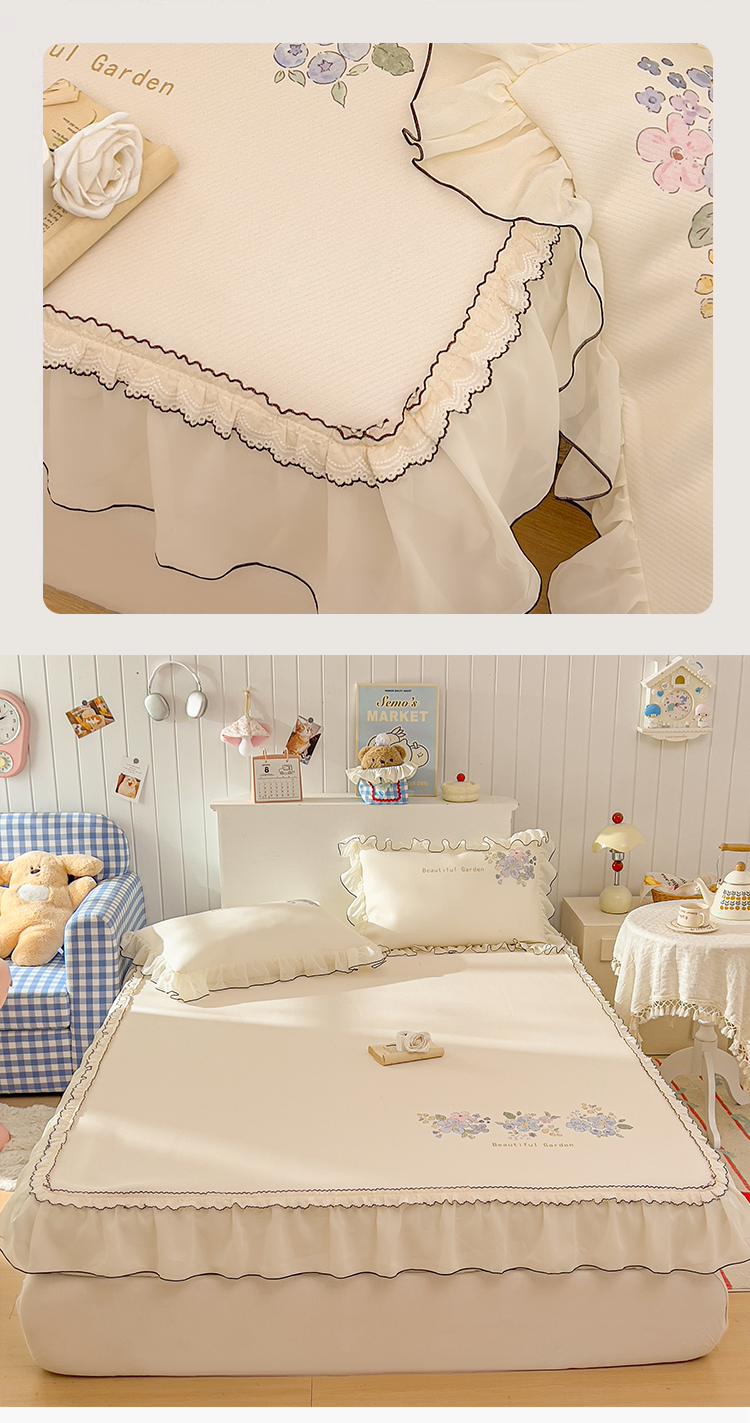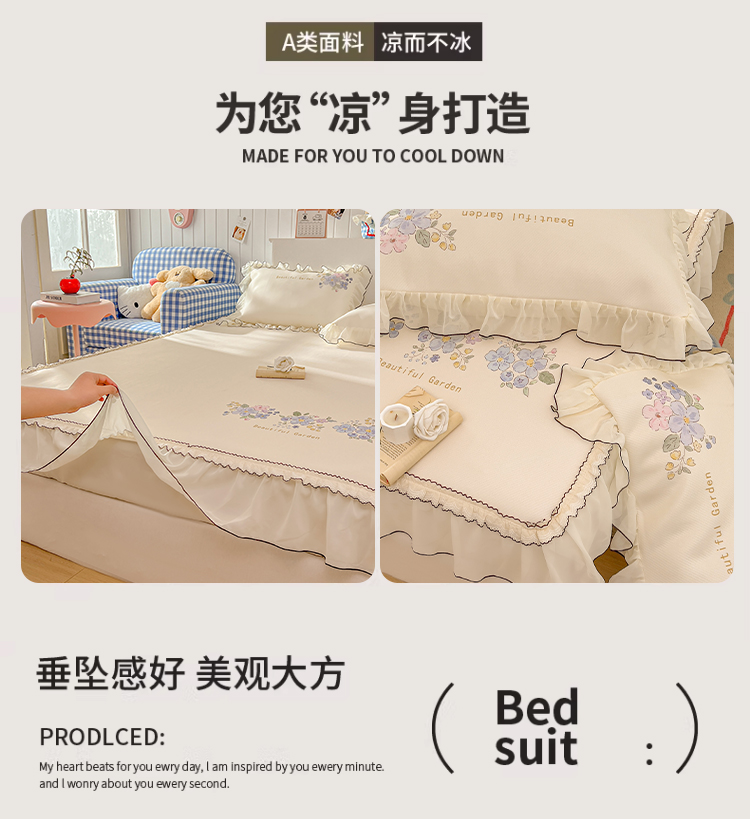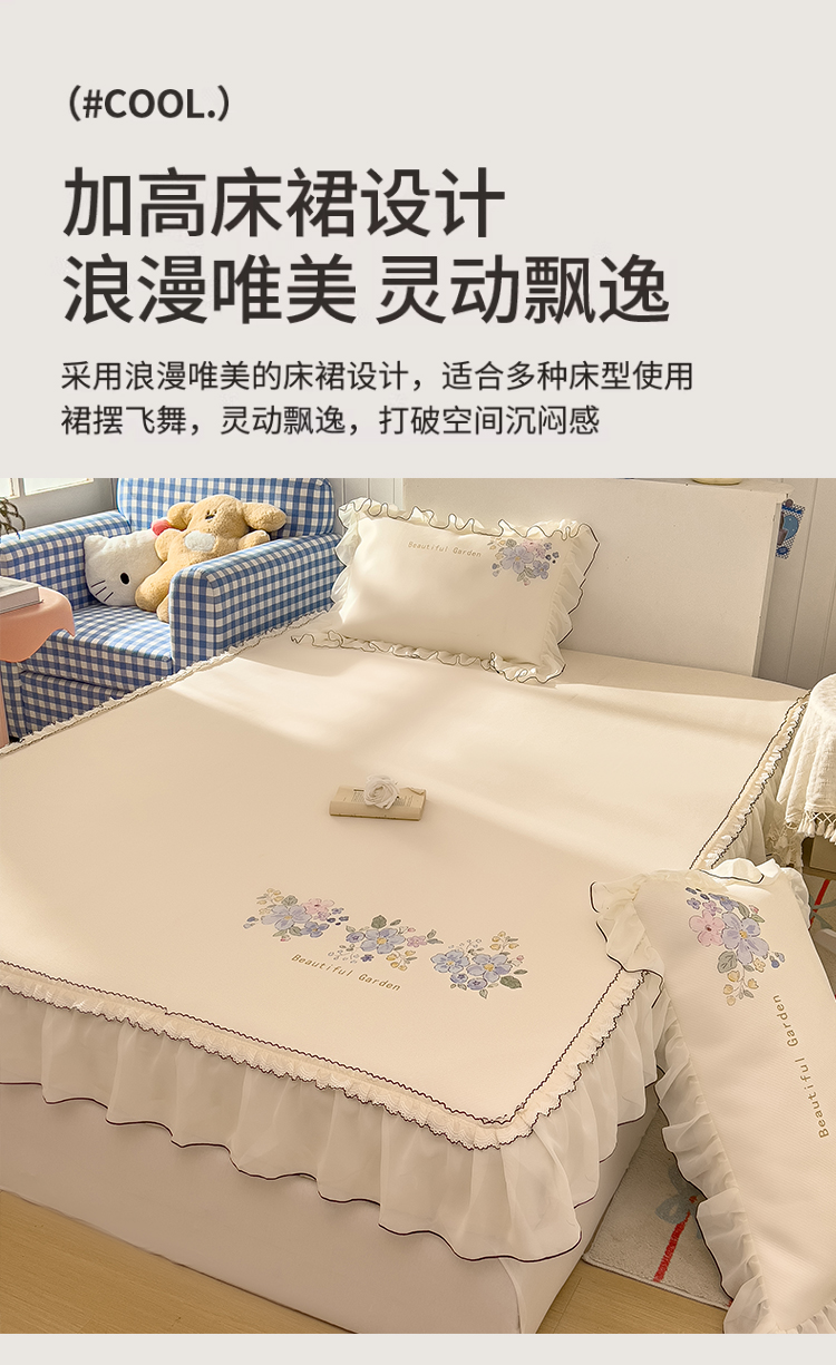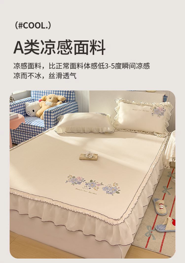 商品名称:川悦生活 2026新款凉豆豆凉感冰丝床裙三件套 花朵满席