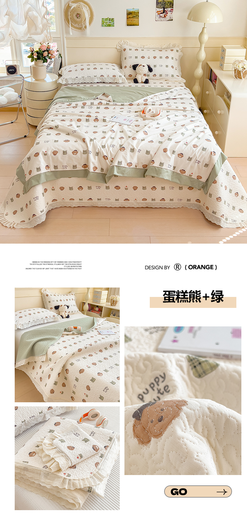 (总)慕木家纺 2026新款A类印花慕丝棉花边款床盖夏被系列(抽空压缩可供跨境)提供买家秀,莫兰迪+浅紫,洛可可+粉,蓝庭叙+灰,锦芙+驼,金兰+黄,凡尔赛+粉,蓝漪+蓝,洛雅+黛紫,墨芳+灰,清漫+绿,波点序章+驼,青妍+粉,星心兔语+粉,熊兔叙+蓝,云菇森林+浅紫,木马童谣+灰,蛋糕熊+绿,甜梦熊+浅粉
