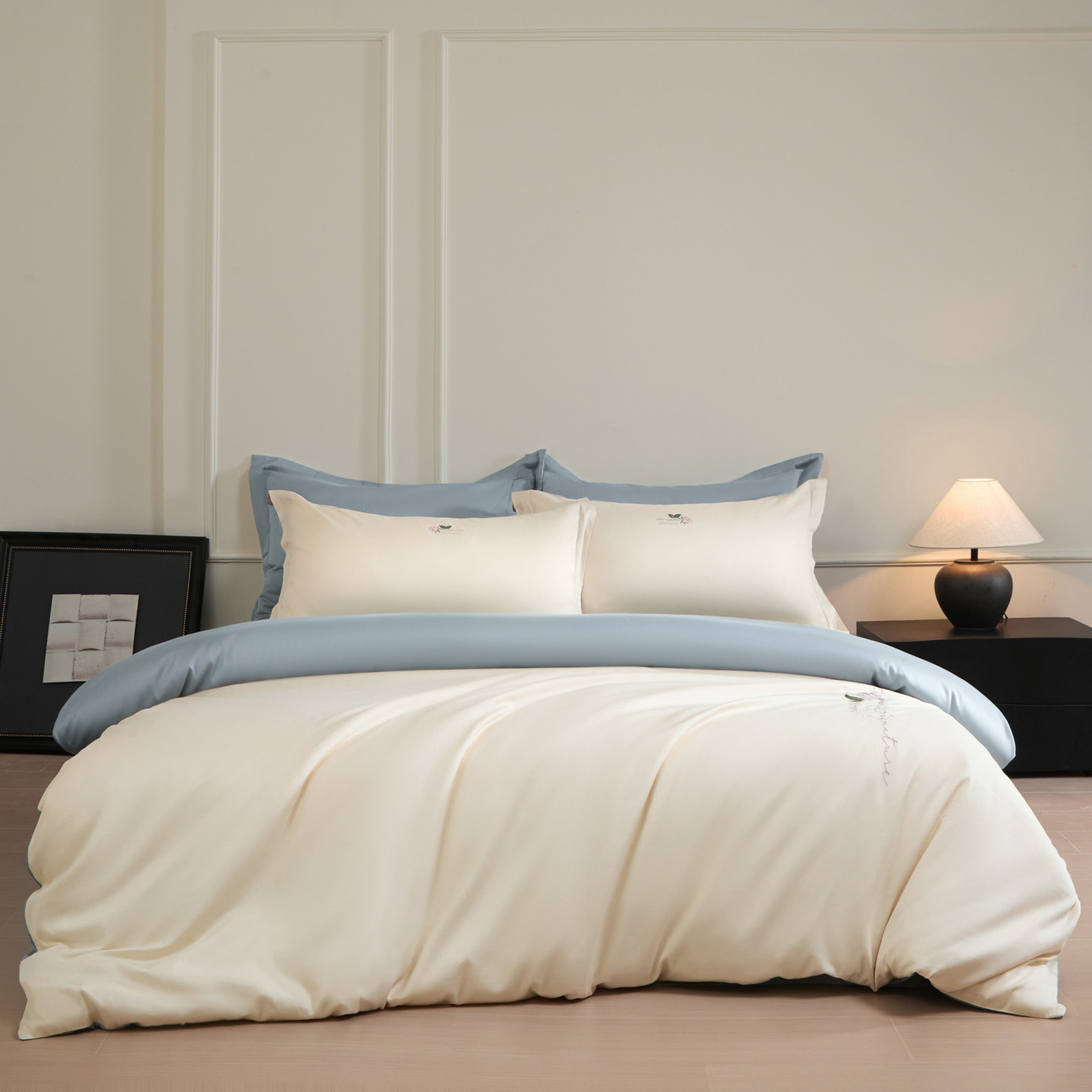 (总)秀色家纺 2026新款100支长绒棉纯棉四件套轻奢全棉刺绣被套床单纯棉四季床品-唤醒,唤醒-奶昔白+天空蓝,唤醒-奶昔白+香槟金,唤醒-奶昔白+莺茶绿,唤醒-奶昔白+茱萸粉,唤醒-天空蓝+茱萸粉,唤醒-香槟金+烟墨灰,唤醒-莺茶绿+香槟金,唤醒-茱萸粉+丁香紫,唤醒-茱萸粉+烟墨灰