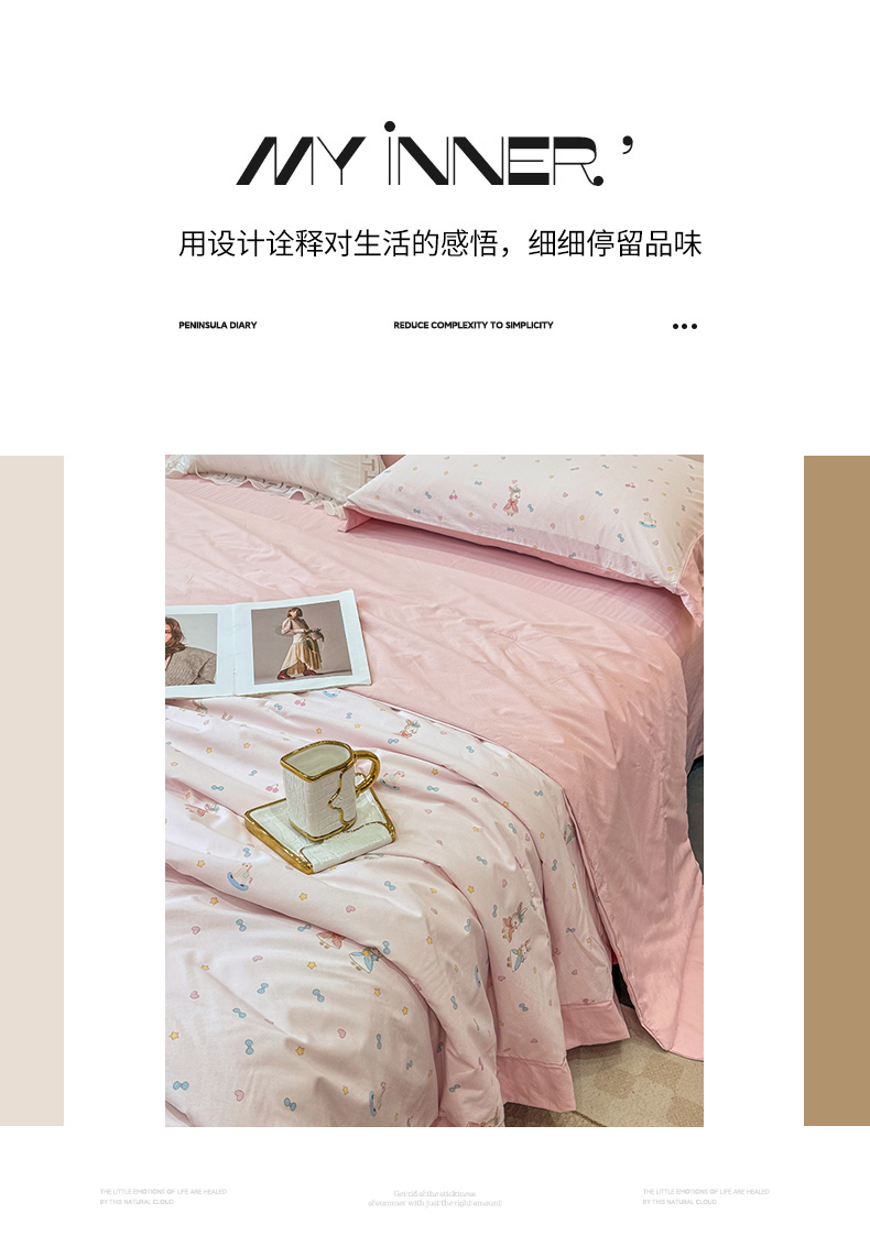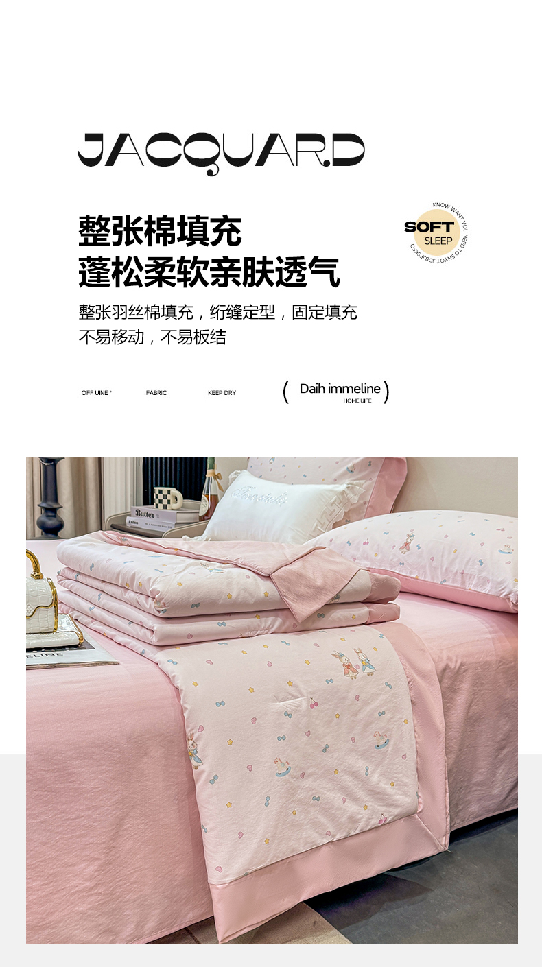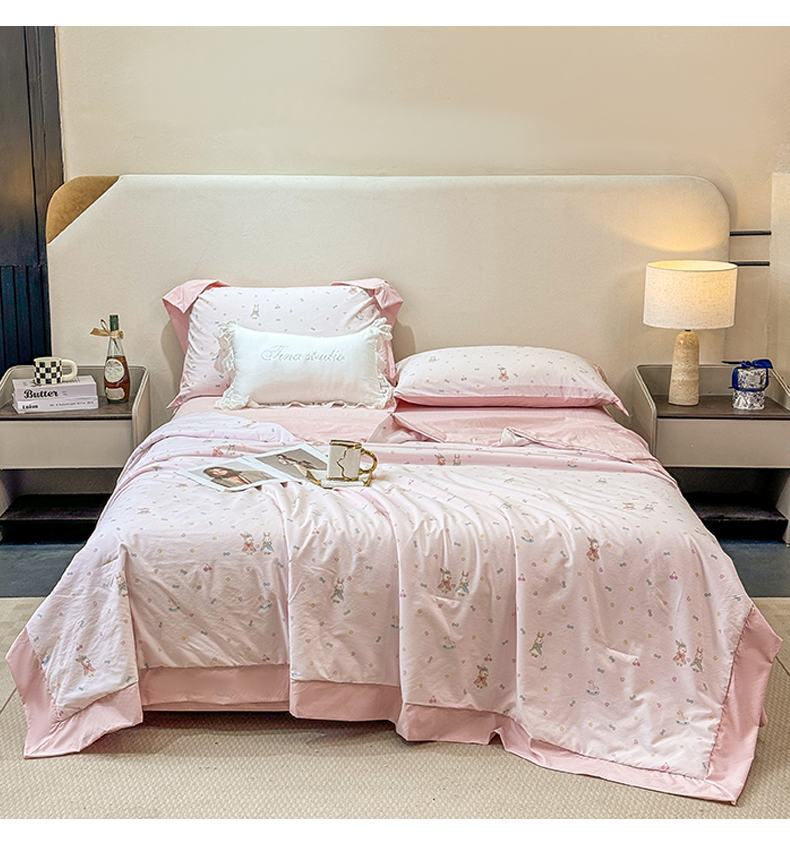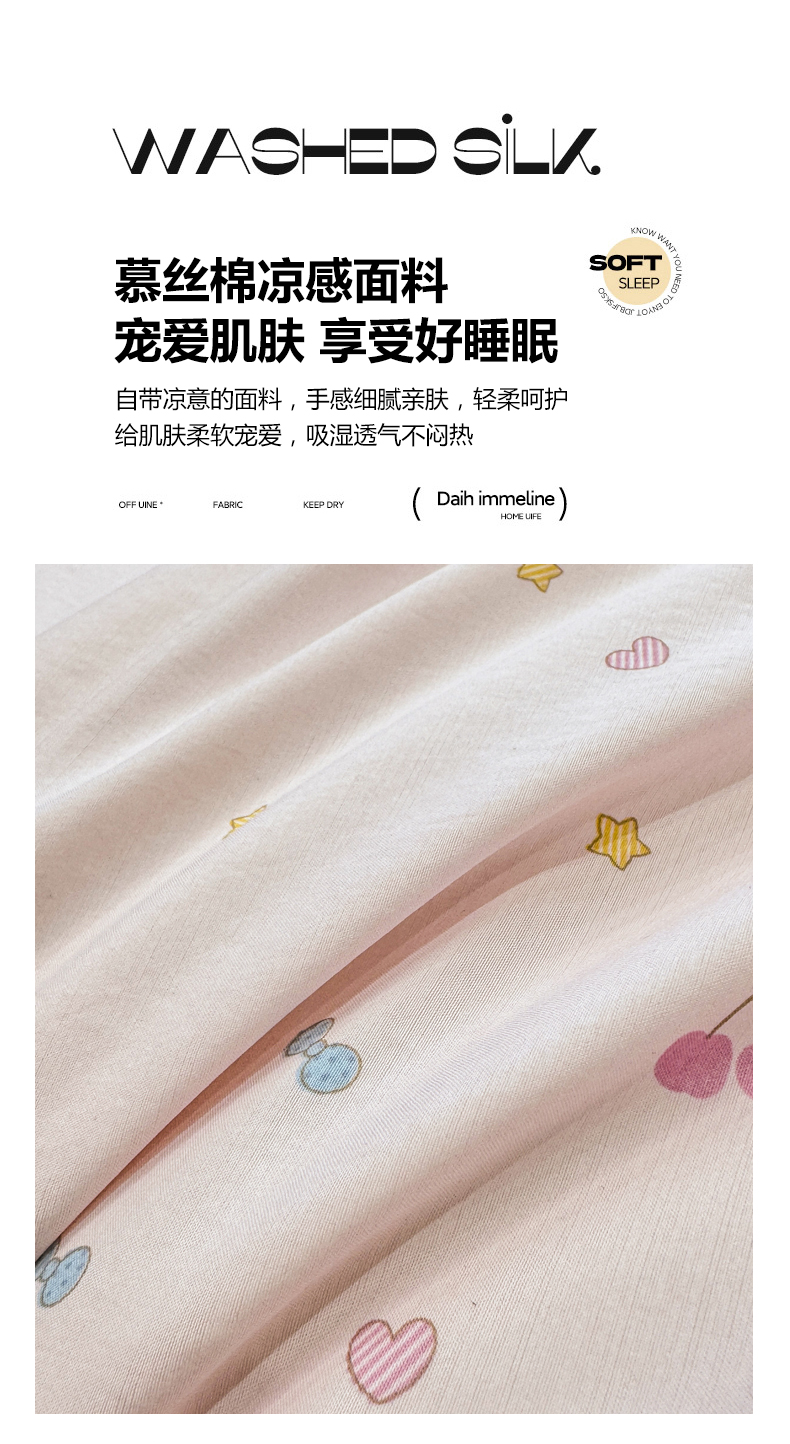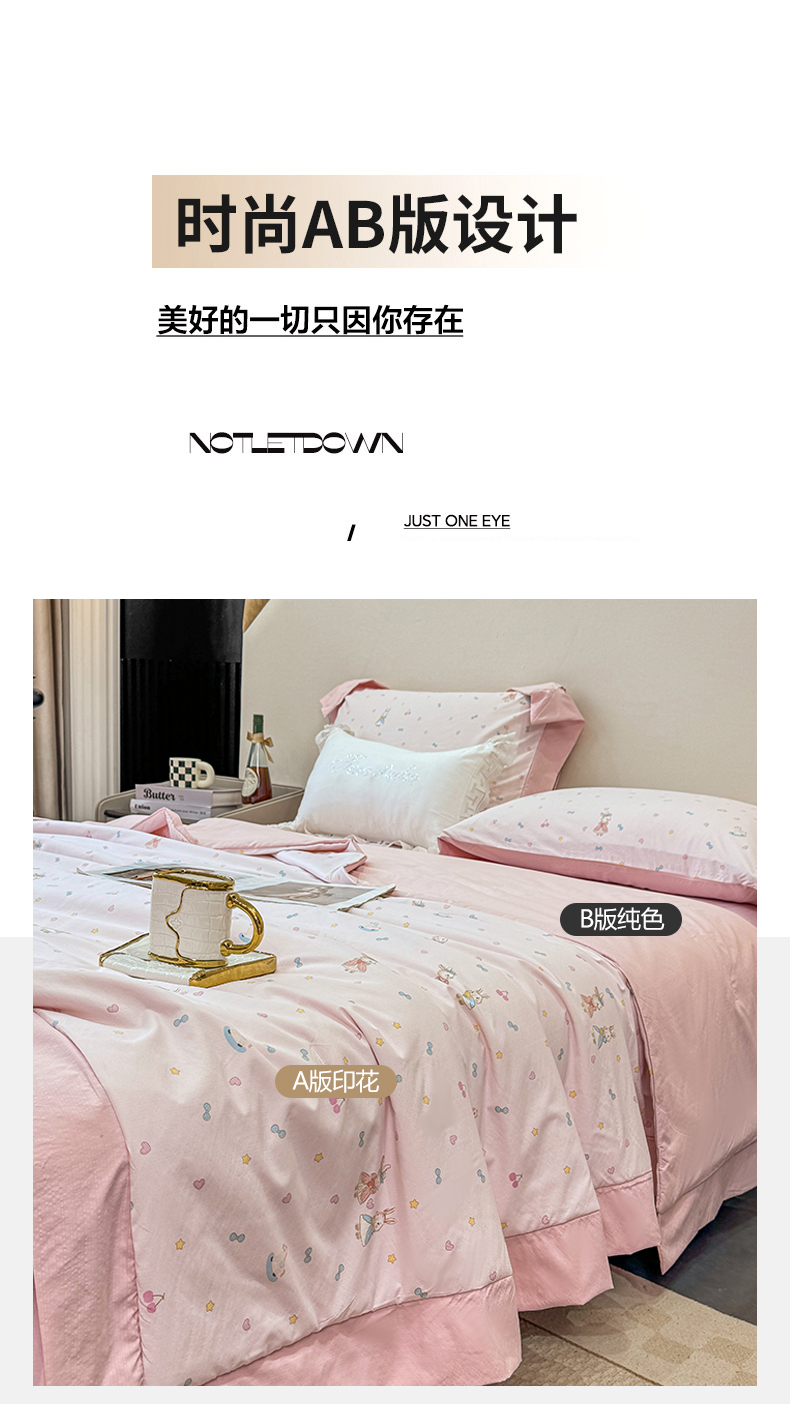 当前位置: 91家纺网 > 商品网购 > 床品套件 > 四件套 > 其它四件套 > 慕木家纺 2026新款A类印花慕丝棉凉感夏被夏凉被空调被四件套 星心兔语+粉