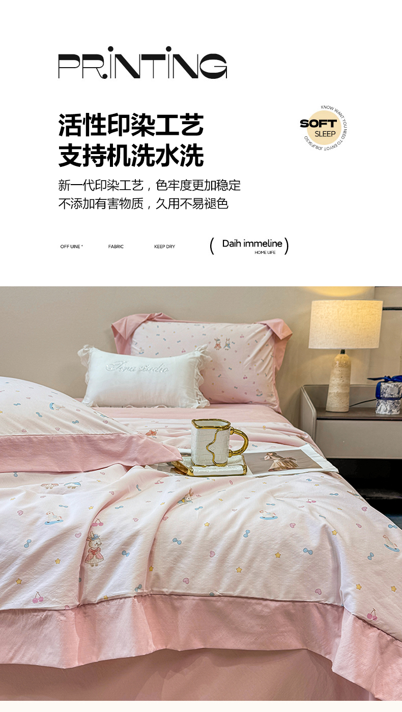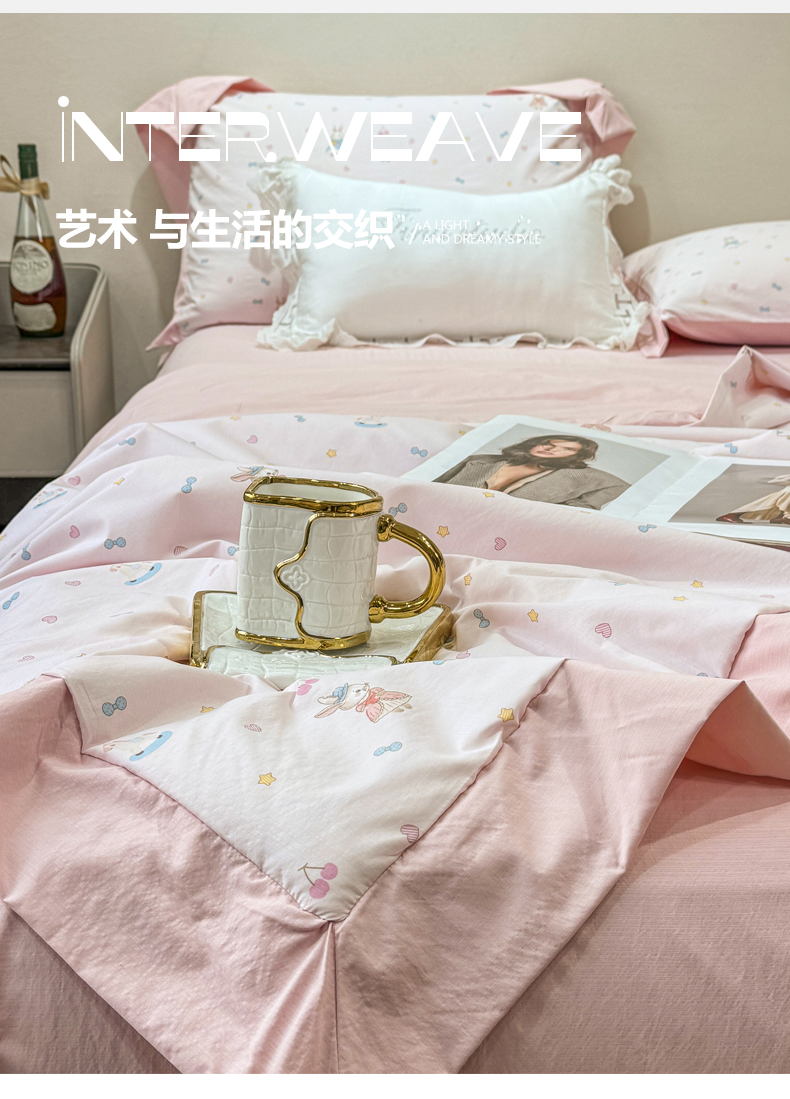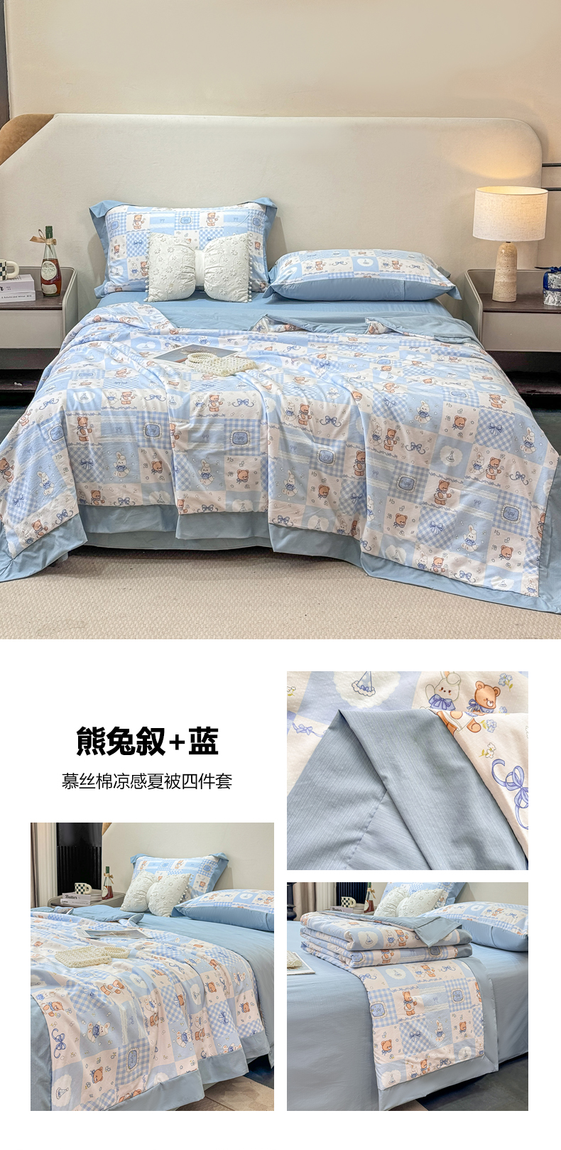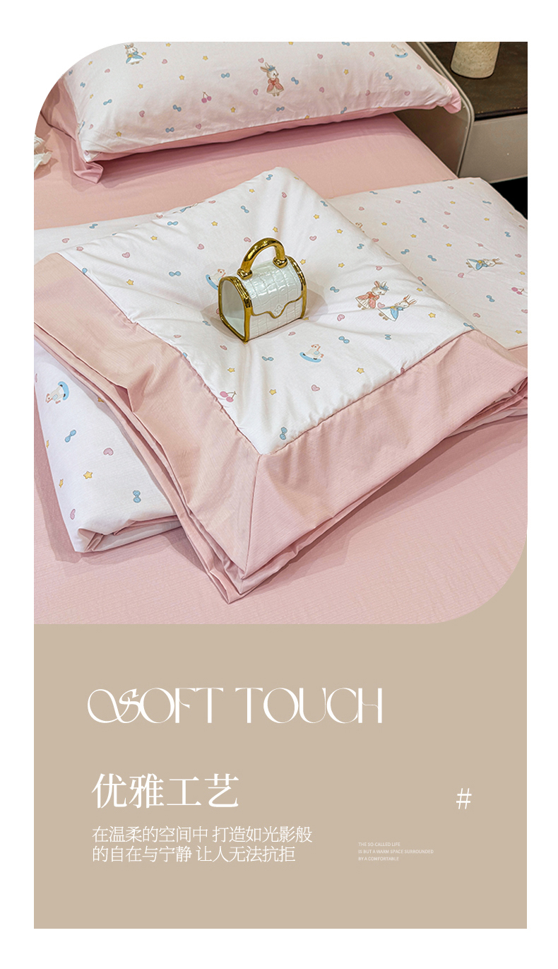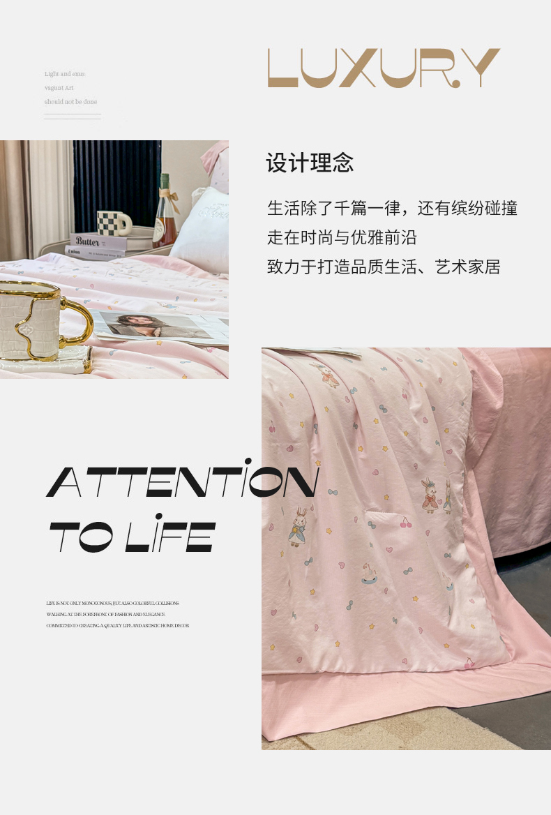 当前位置: 91家纺网 > 商品网购 > 床品套件 > 四件套 > 其它四件套 > 慕木家纺 2026新款A类印花慕丝棉凉感夏被夏凉被空调被四件套 星心兔语+粉