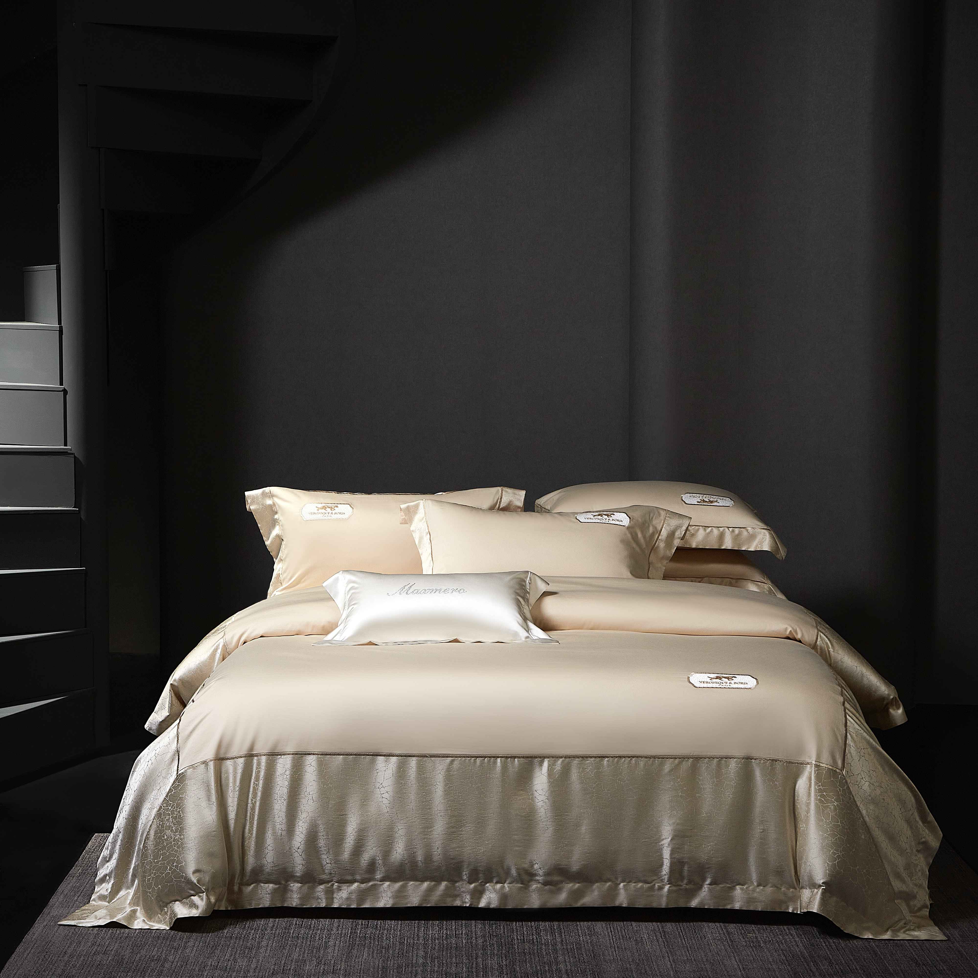 馨蕊家居 2026春夏新品100S高精密刺绣四件套-简序系列 高精密简序-奶咖