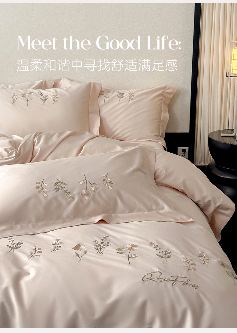 泽西家纺+V17798841158发大图 2026新品刺绣50s双股全棉长绒棉纯棉宽边四件套-花有约 花有约-粉色