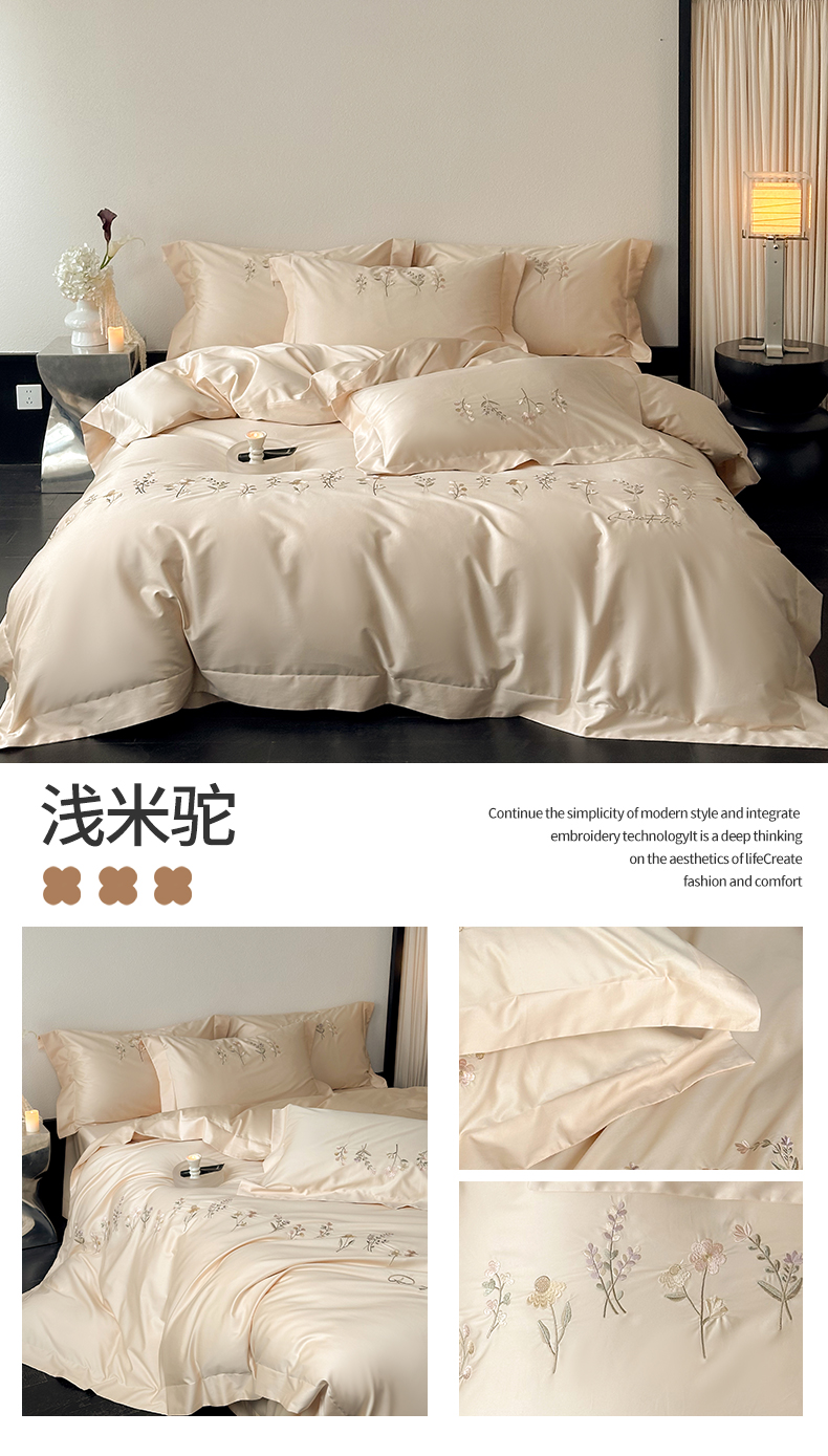 (总)泽西家纺+V17798841158发大图 2026新品刺绣50s双股全棉长绒棉纯棉宽边四件套-花有约,花有约-粉色,花有约-玛瑙绿,花有约-梦幻紫,花有约-奶芋色,花有约-浅米驼