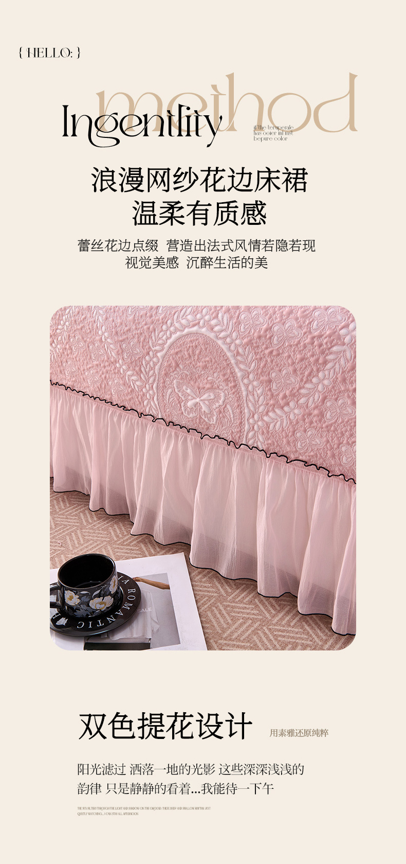 商品名称:(总)席之家 2026新款PE乙纶冰豆豆双色提花床裙款三件套-蝶舞花间