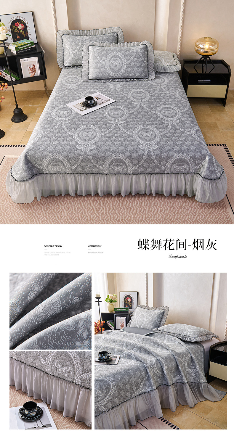 (总)席之家 2026新款PE乙纶冰豆豆双色提花床裙款三件套-蝶舞花间