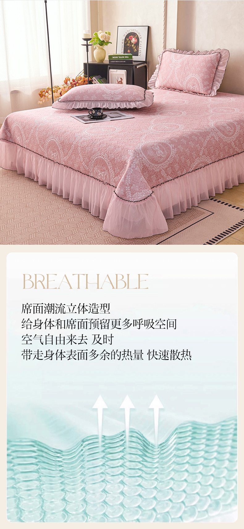 (总)席之家 2026新款一经三纬床裙冰丝席,韵令-天青色,韵令-浅粉色,韵令-灰色,繁花-暗红,繁花冰-川蓝,繁花-高级灰