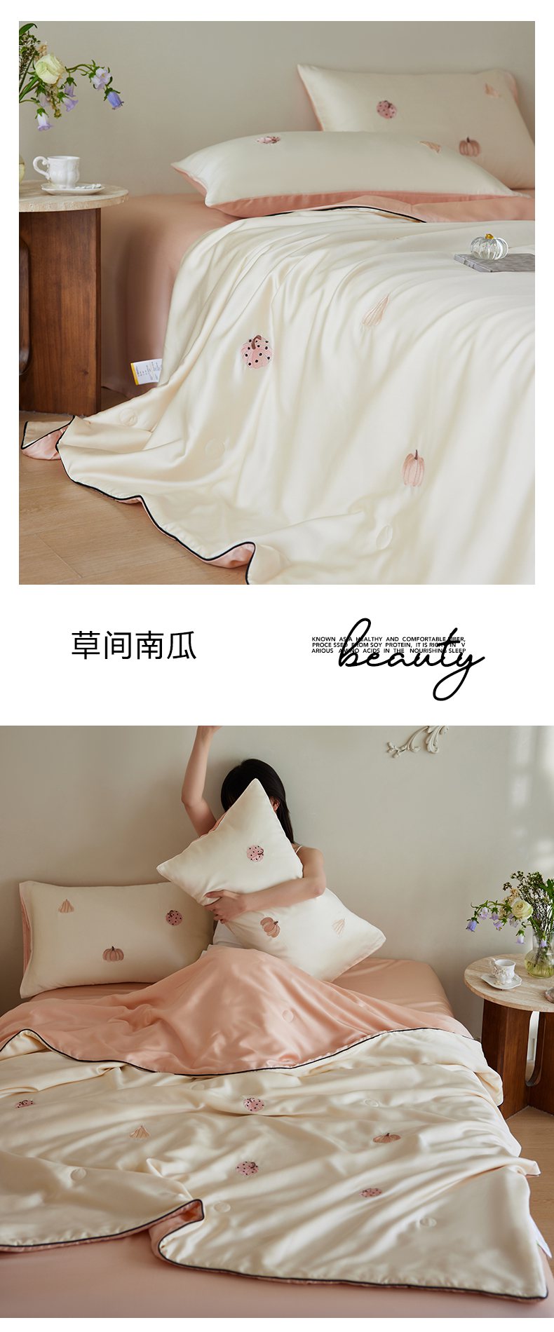当前位置: 91家纺网 > 商品网购 > 被子 > 莱赛尔夏被 > 沐珩家纺 2026新款莱赛尔天丝绣花夏被四件套嵌绳款-萌神系列 草间南瓜