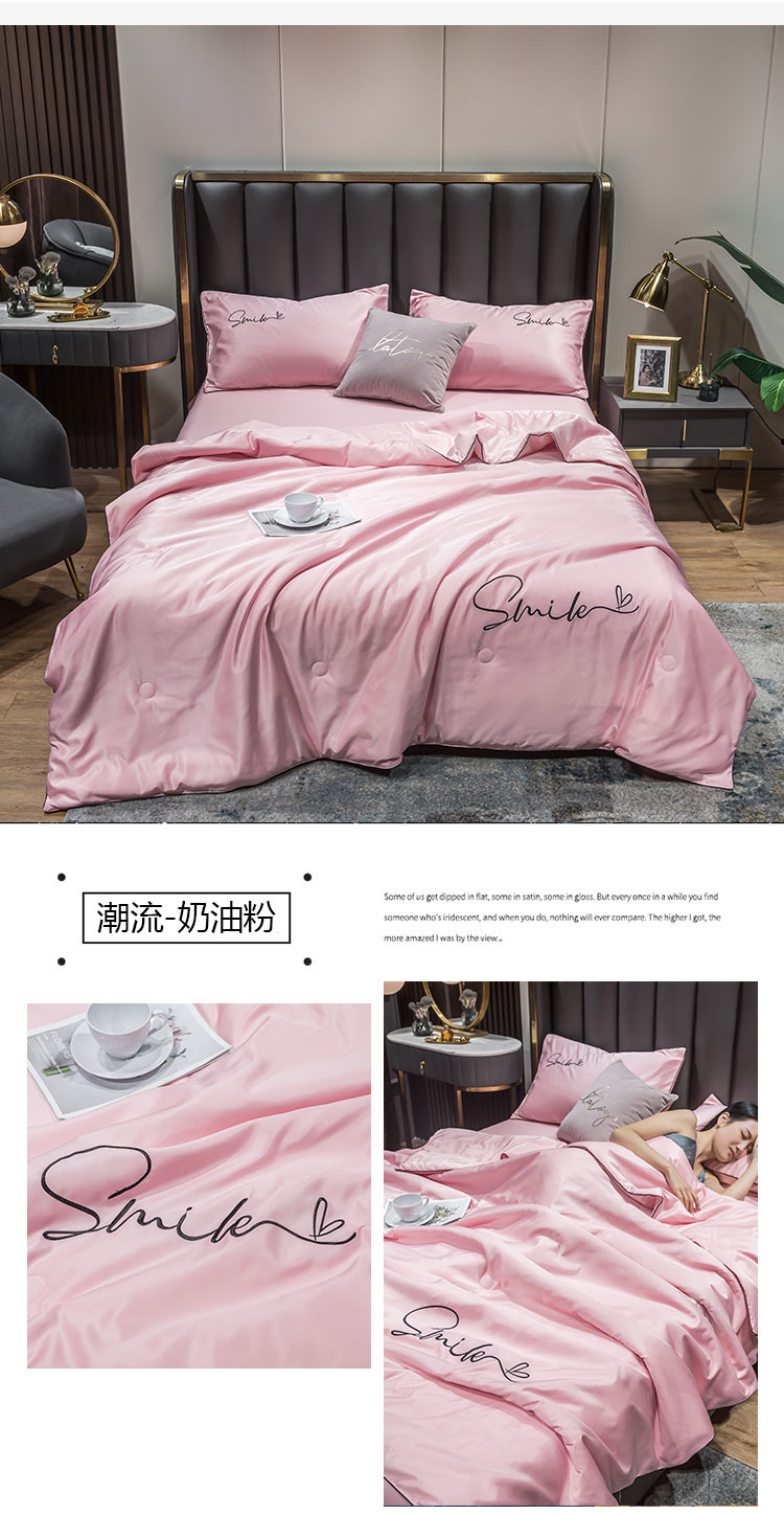 • 91家纺网 家纺一手货源 找家纺 蕾诺家纺 2026新款冰丝刺绣真丝轻奢简约夏被 被子被芯 潮流-奶油粉
