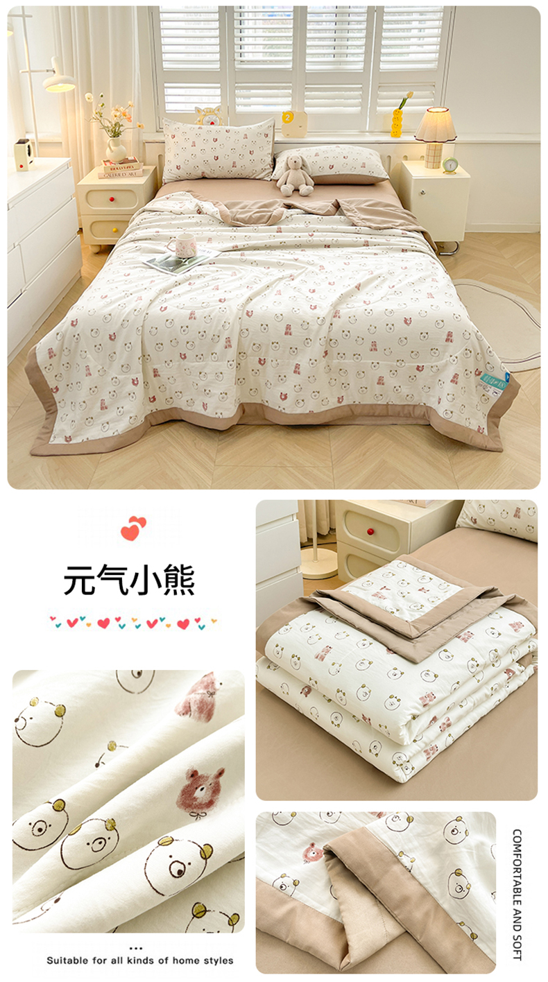 商品名称:梵蒂莎 【地板价】2026新品水洗棉新疆棉花夏被印花夏被格子小清新空调被被子被芯(需要买家秀,加微信) 比利小熊-咖