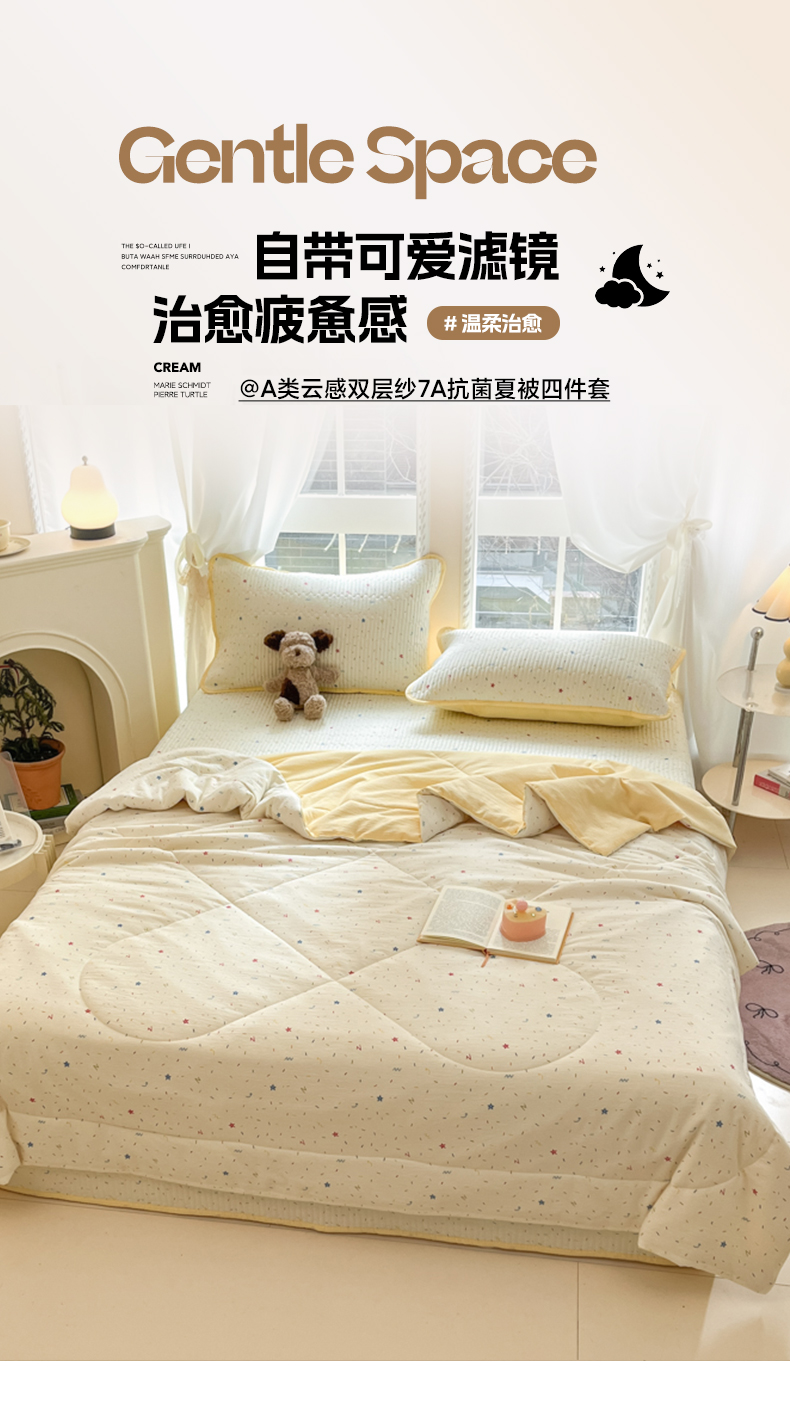 几禾 2026新款云感双层纱7A抗菌夏被四件套系列-栀夏系列 栀夏-织梦