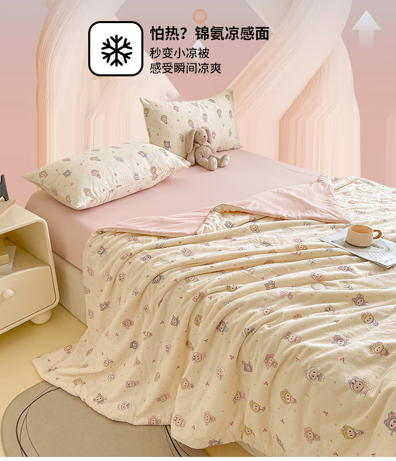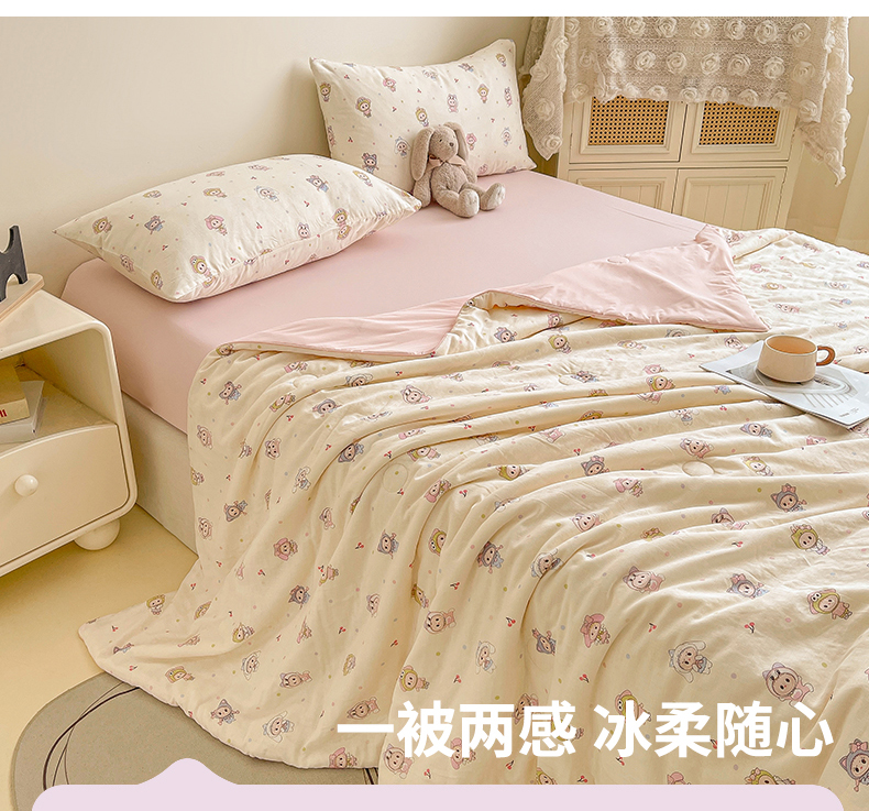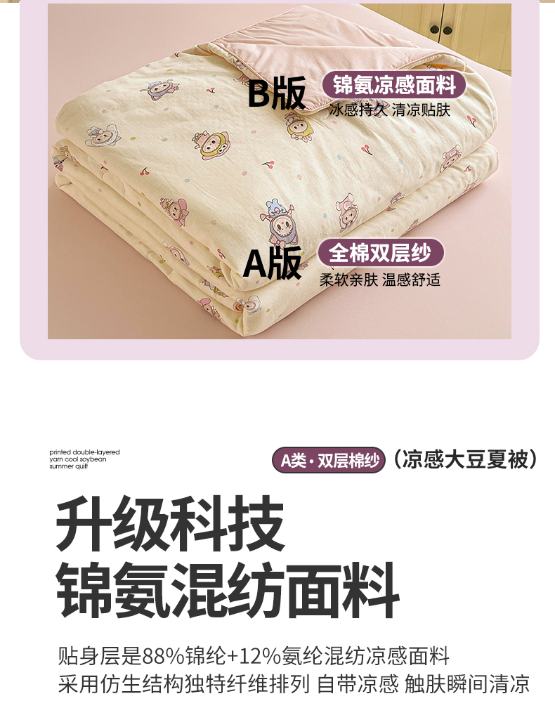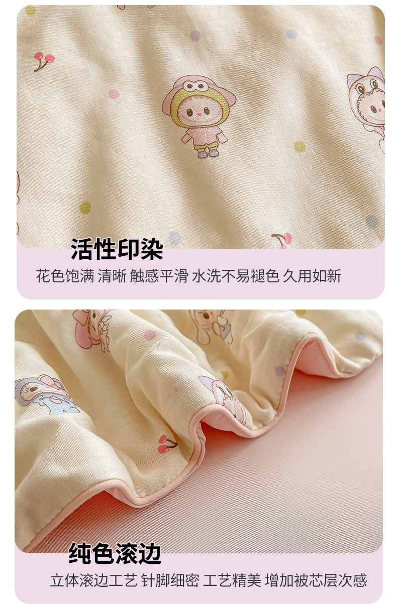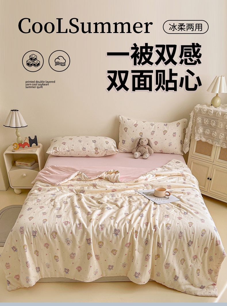 • 91家纺网 家纺一手货源 找家纺 小禹仔家纺 2026新款A类印花双层纱凉感大豆夏被 布布娃