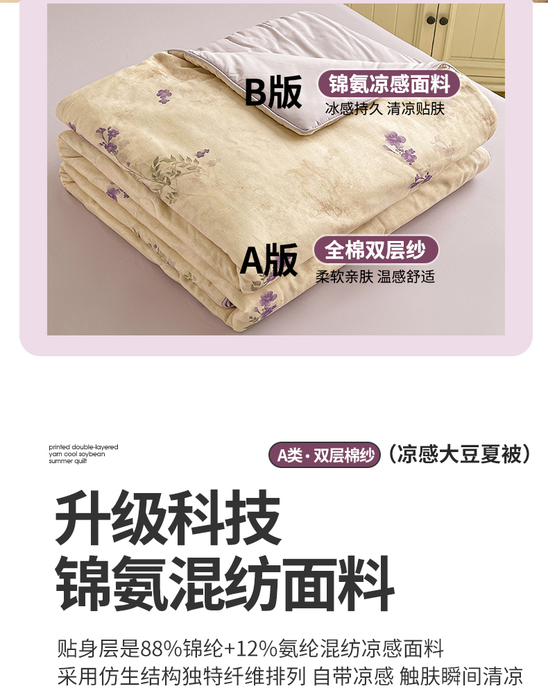 • 91家纺网 家纺一手货源 找家纺 小禹仔家纺 2026新款A类印花双层纱凉感大豆夏被 奈里