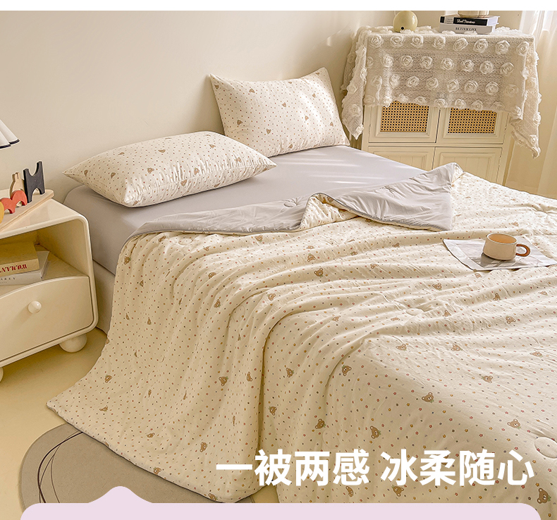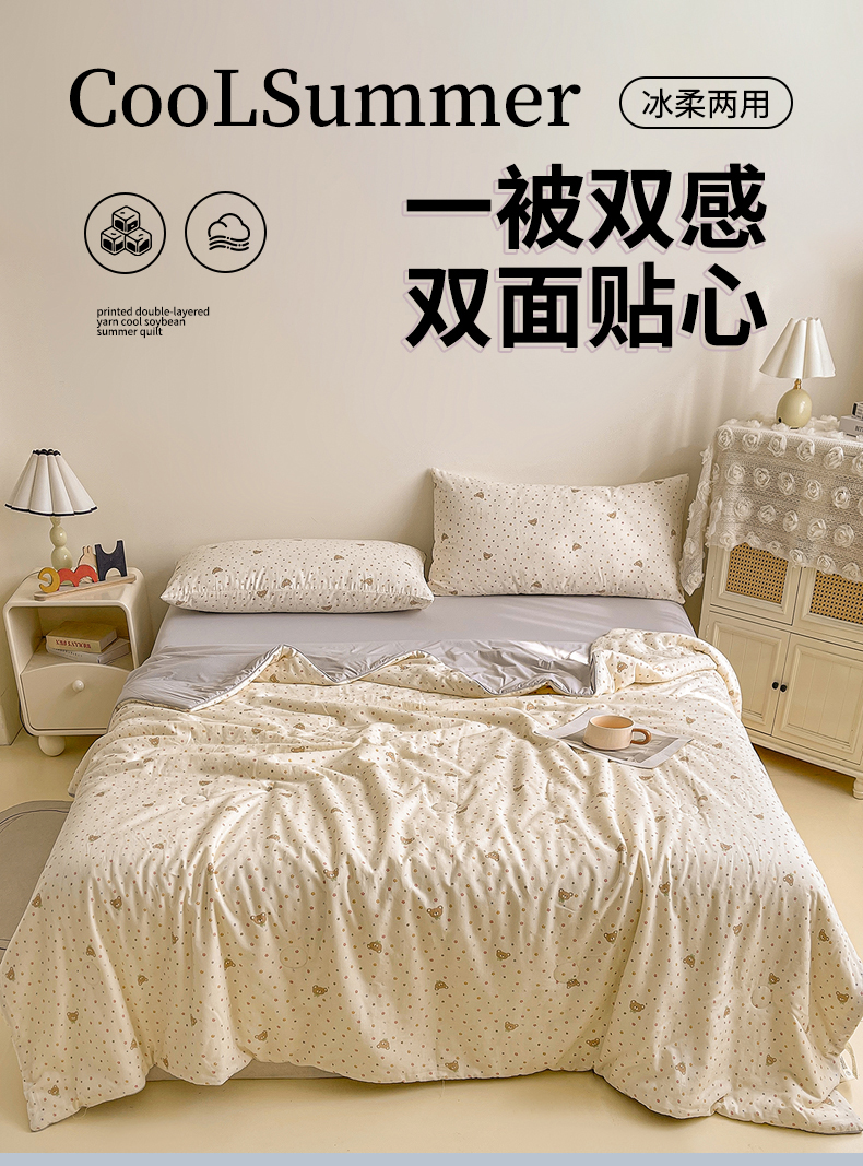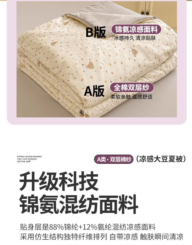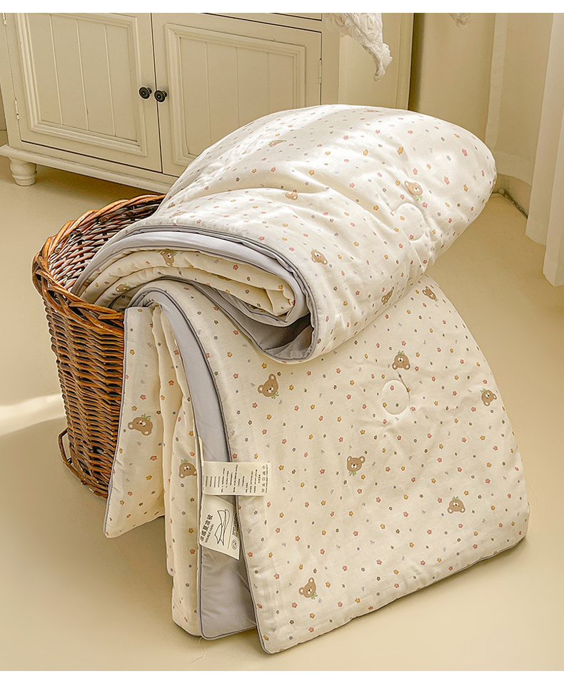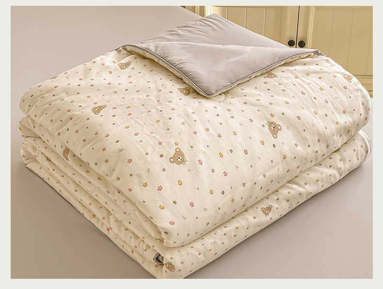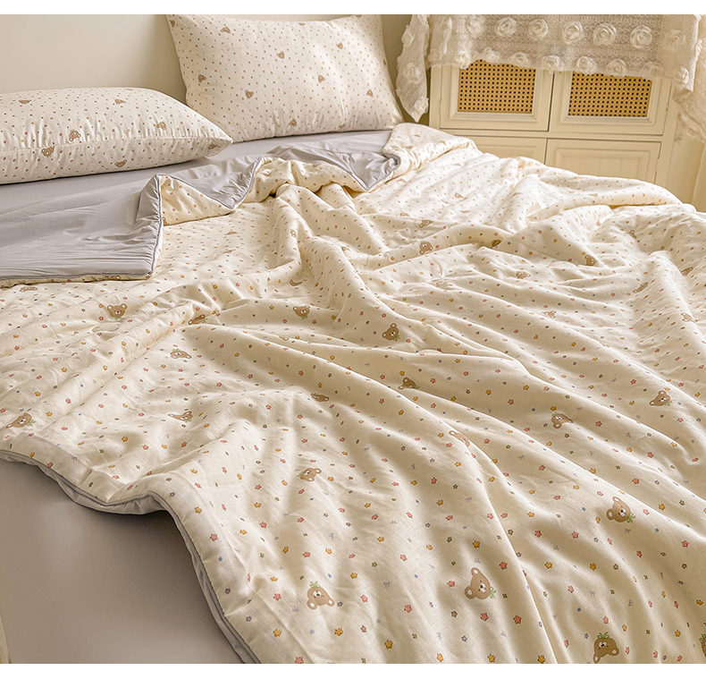 • 91家纺网 家纺一手货源 找家纺 小禹仔家纺 2026新款A类印花双层纱凉感大豆夏被 小米熊