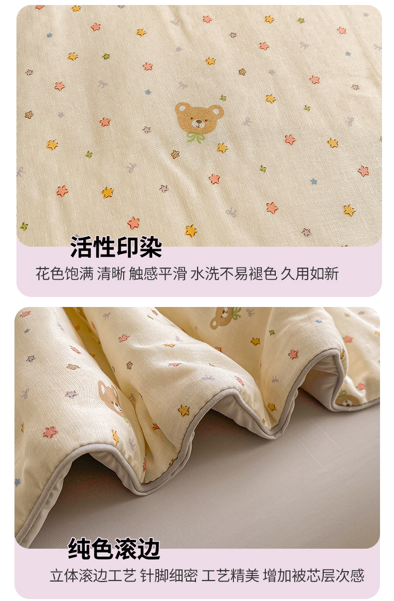 小禹仔家纺 2026新款A类印花双层纱凉感大豆夏被 小米熊