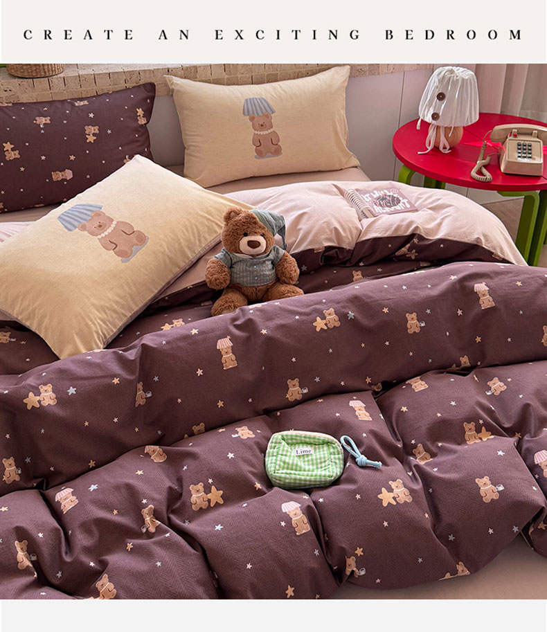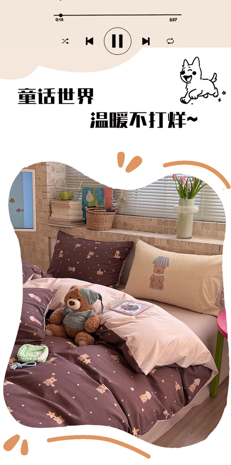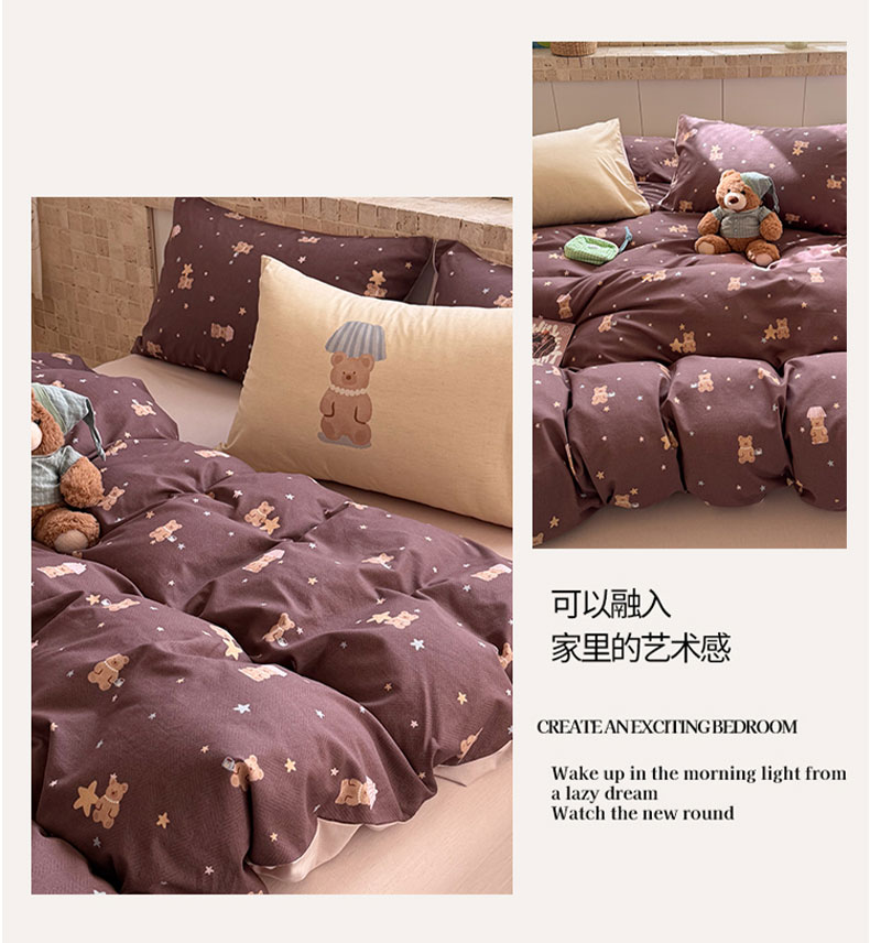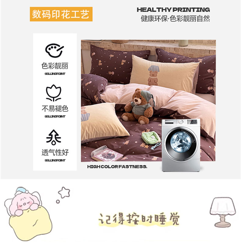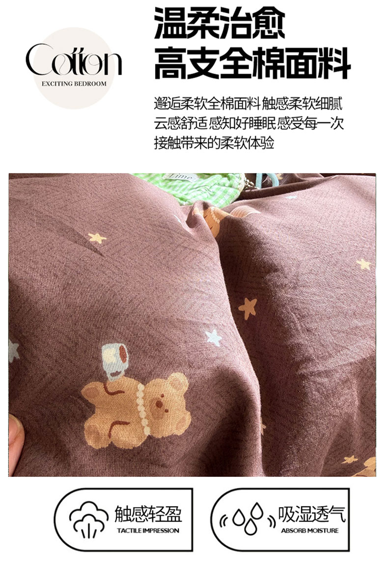 当前位置: 91家纺网 > 商品网购 > 床品套件 > 四件套 > 其它四件套 > 桃子家居 2026A类纯棉水洗原生态棉麻数码印花大版枕套混搭卡通小清新韩国小布袋系列四件套 棉麻混搭-焦糖星星熊