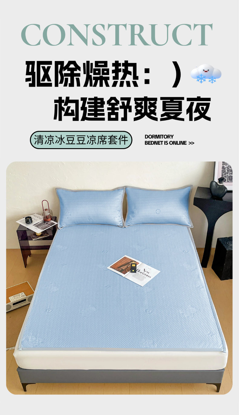 商品名称:维娜斯 2026新款印花冰豆豆凉席单人宿舍冰豆豆席子 四叶熊绿