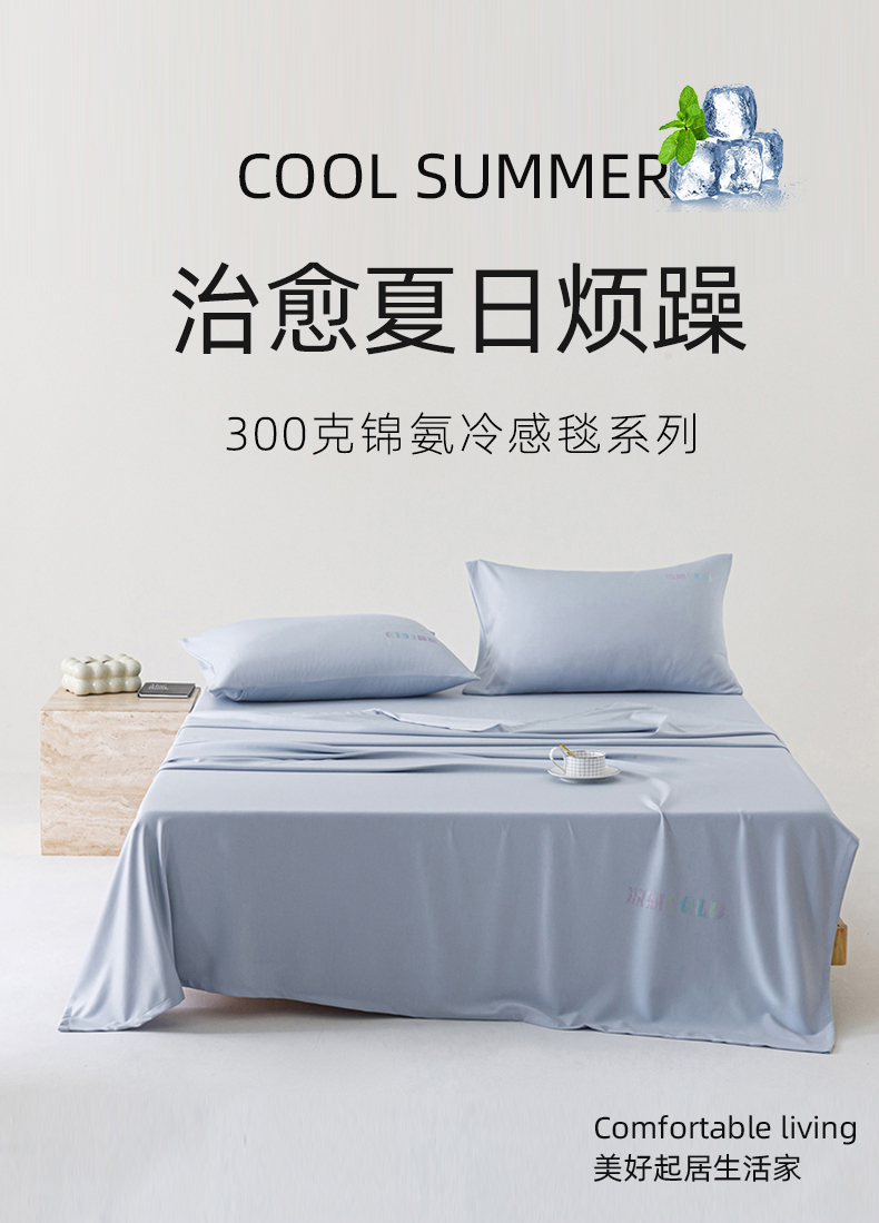 • 91家纺网 家纺一手货源 找家纺 悦然毛巾被 2026新款锦氨冷感毯300克加厚盖毯床笠夏被空调凉感夏凉被空调被 素凉清感天蓝