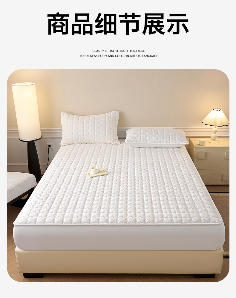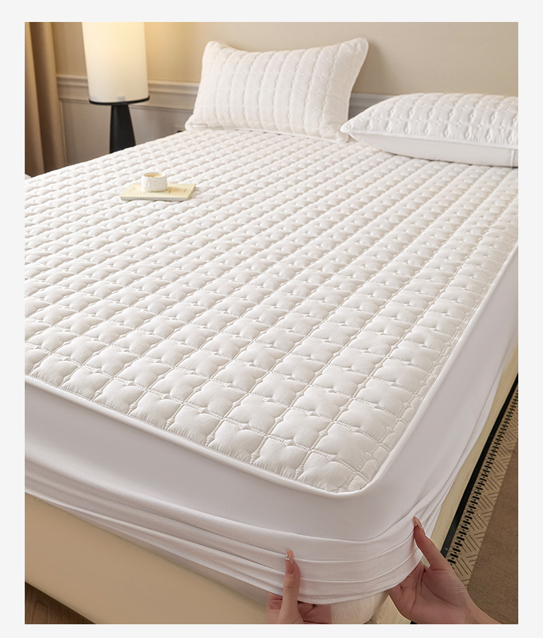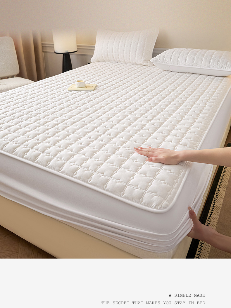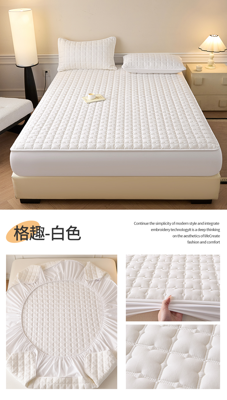 • 91家纺网 家纺一手货源 找家纺 优眠坊 2026新款夹棉床笠/防水床笠   床笠三件套 格趣-白色-不防水款