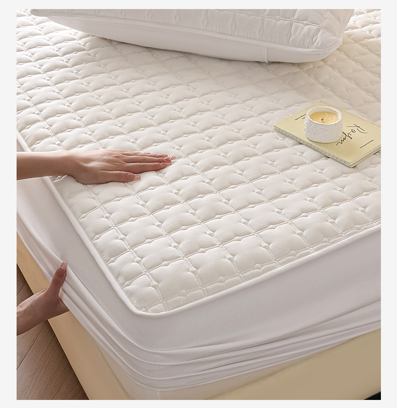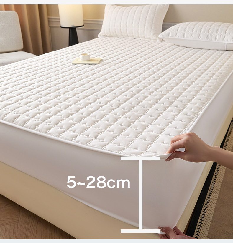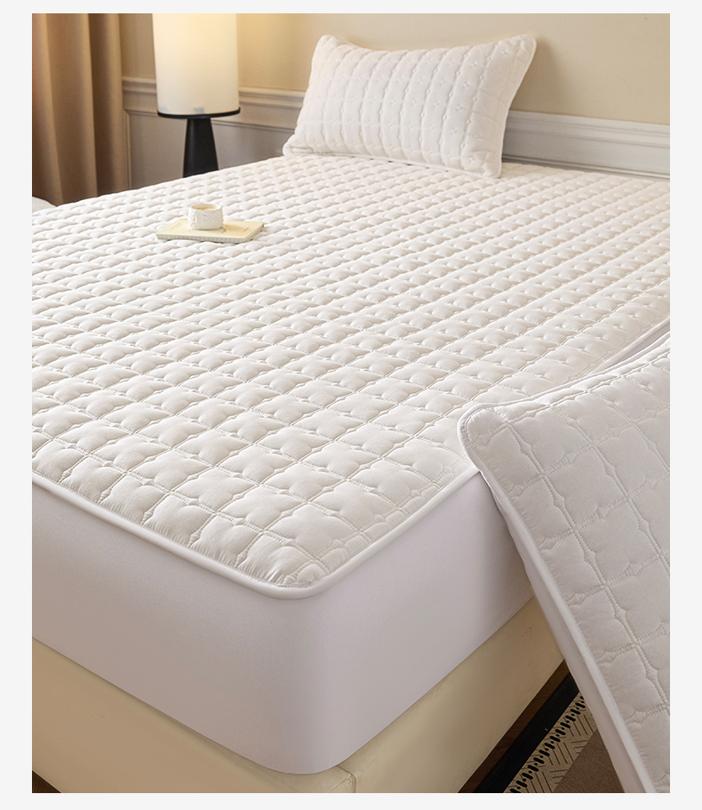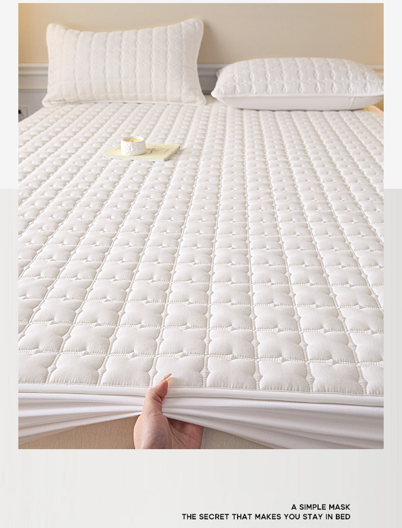 • 91家纺网 家纺一手货源 找家纺 优眠坊 2026新款夹棉床笠/防水床笠   床笠三件套 格趣-白色-不防水款