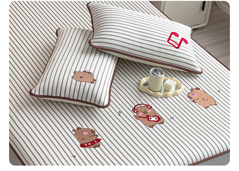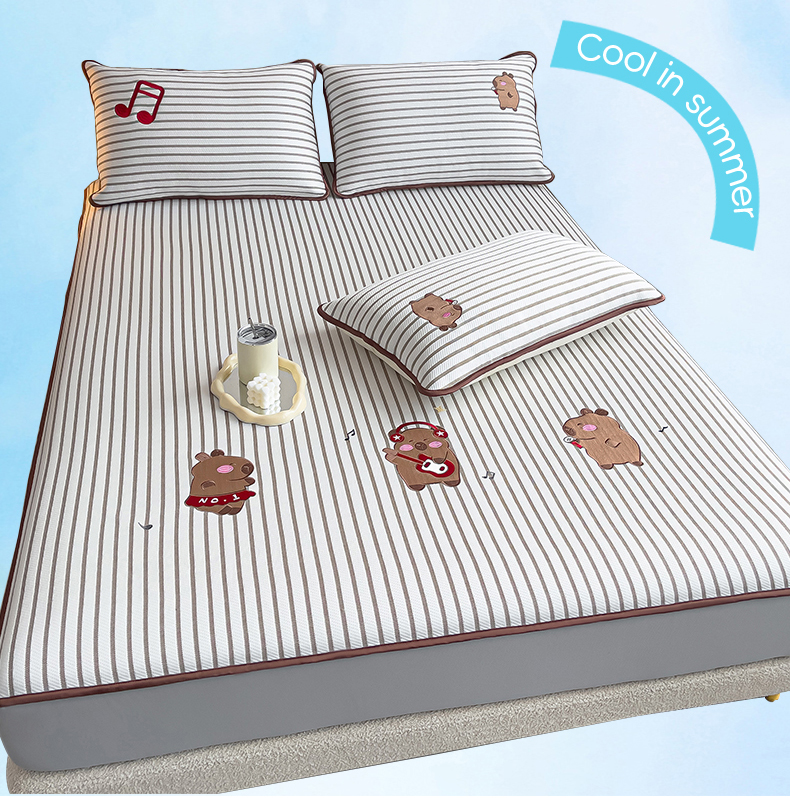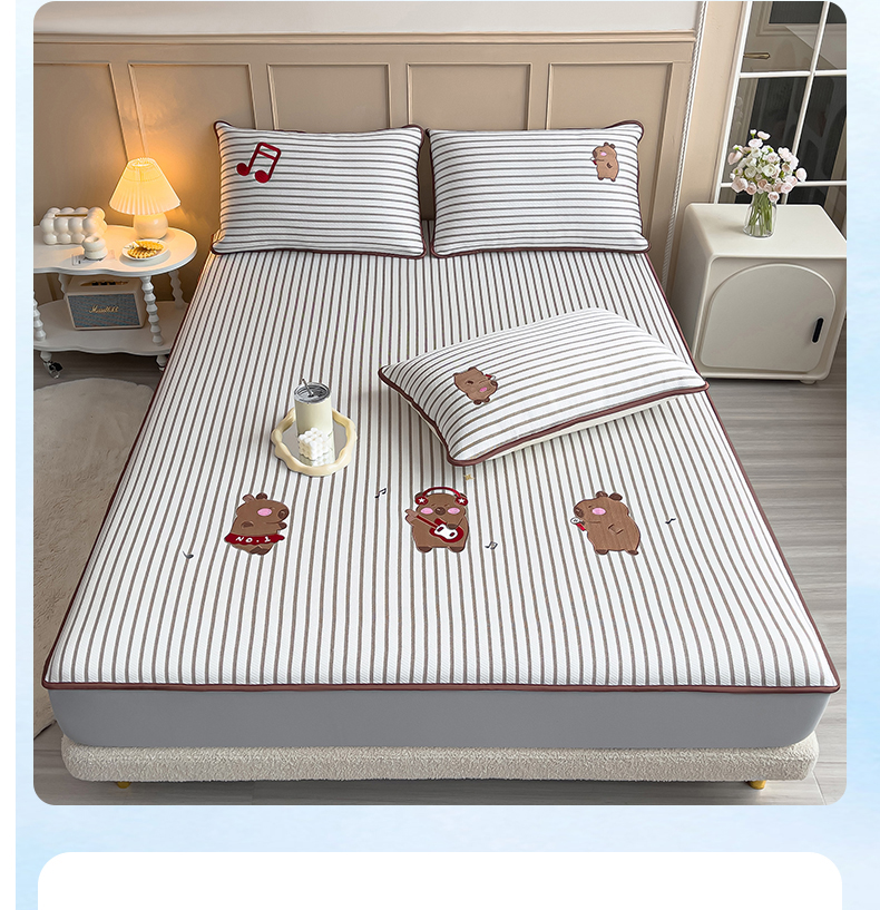 炫拼家纺 2026新款A类凉豆豆提花条纹卡通刺绣床笠席 条纹-元气卡皮