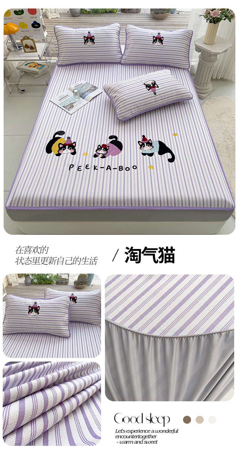 (总)炫拼家纺 2026新款A类凉豆豆提花条纹卡通刺绣床笠席,条纹-淘气猫,条纹-冰淇淋狗,条纹-趴趴睡,条纹-气泡女孩,条纹-小怪兽糖糖,条纹-元气卡皮,条纹-又混了一天