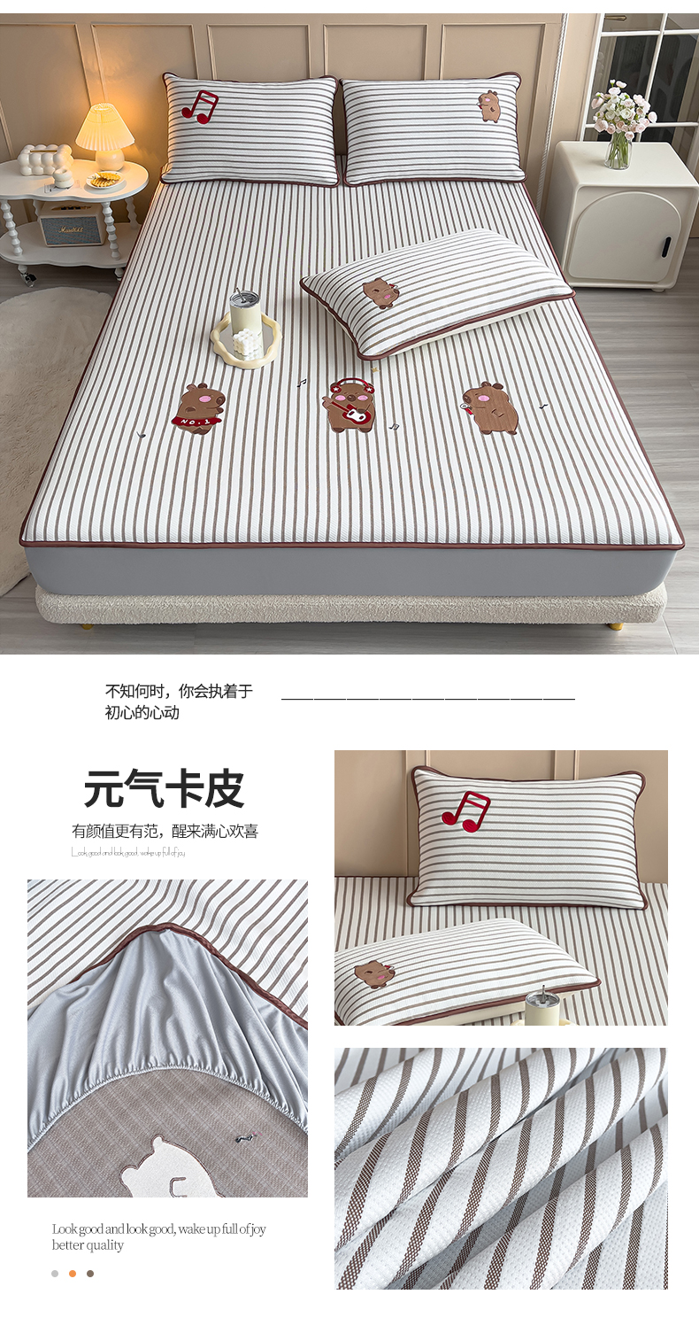 商品名称:炫拼家纺 2026新款A类凉豆豆提花条纹卡通刺绣床笠席 条纹-元气卡皮