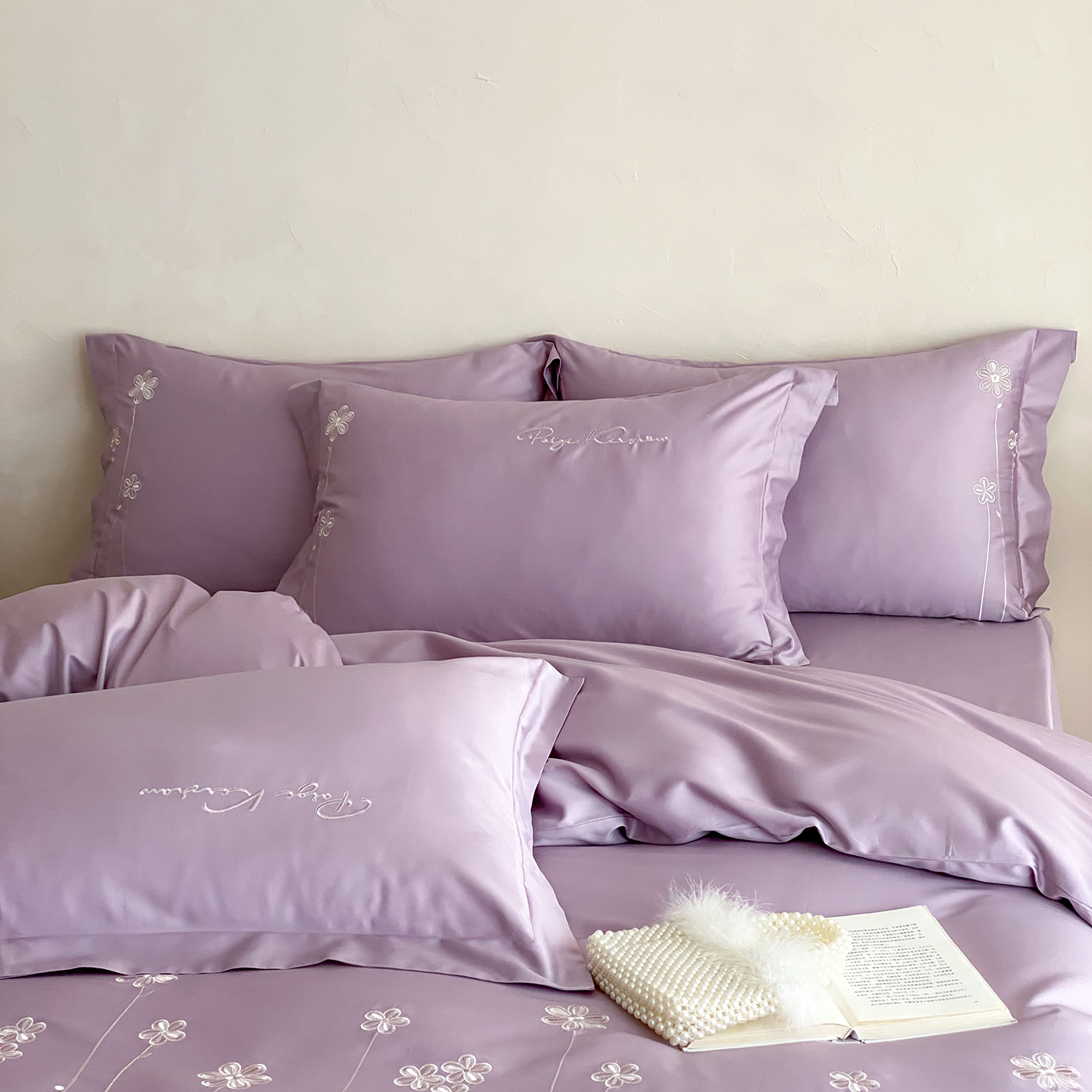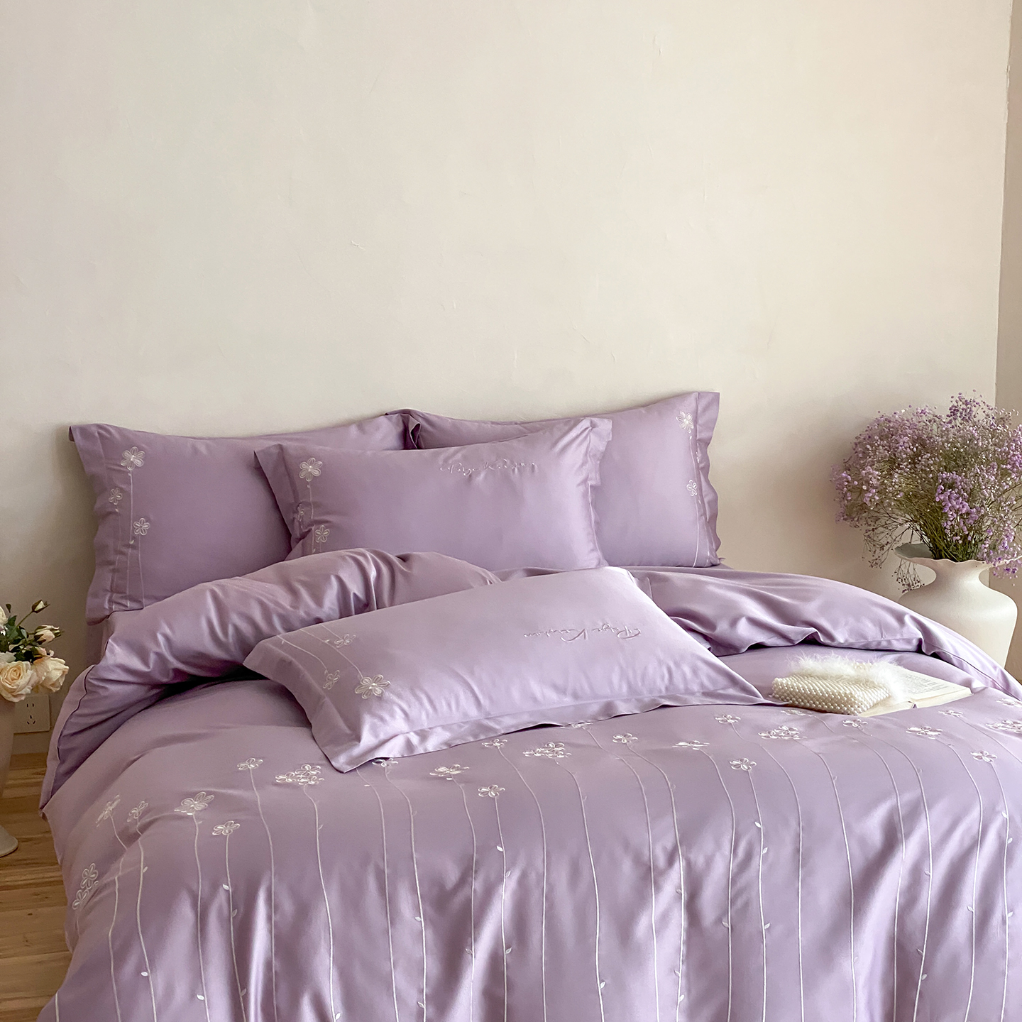 (总)曼布缇 2026新款春夏款新品长绒棉刺绣四件套 -花涧(会员-20,券后338起),花涧-紫色,花涧-浅粉,花涧-浅米咖