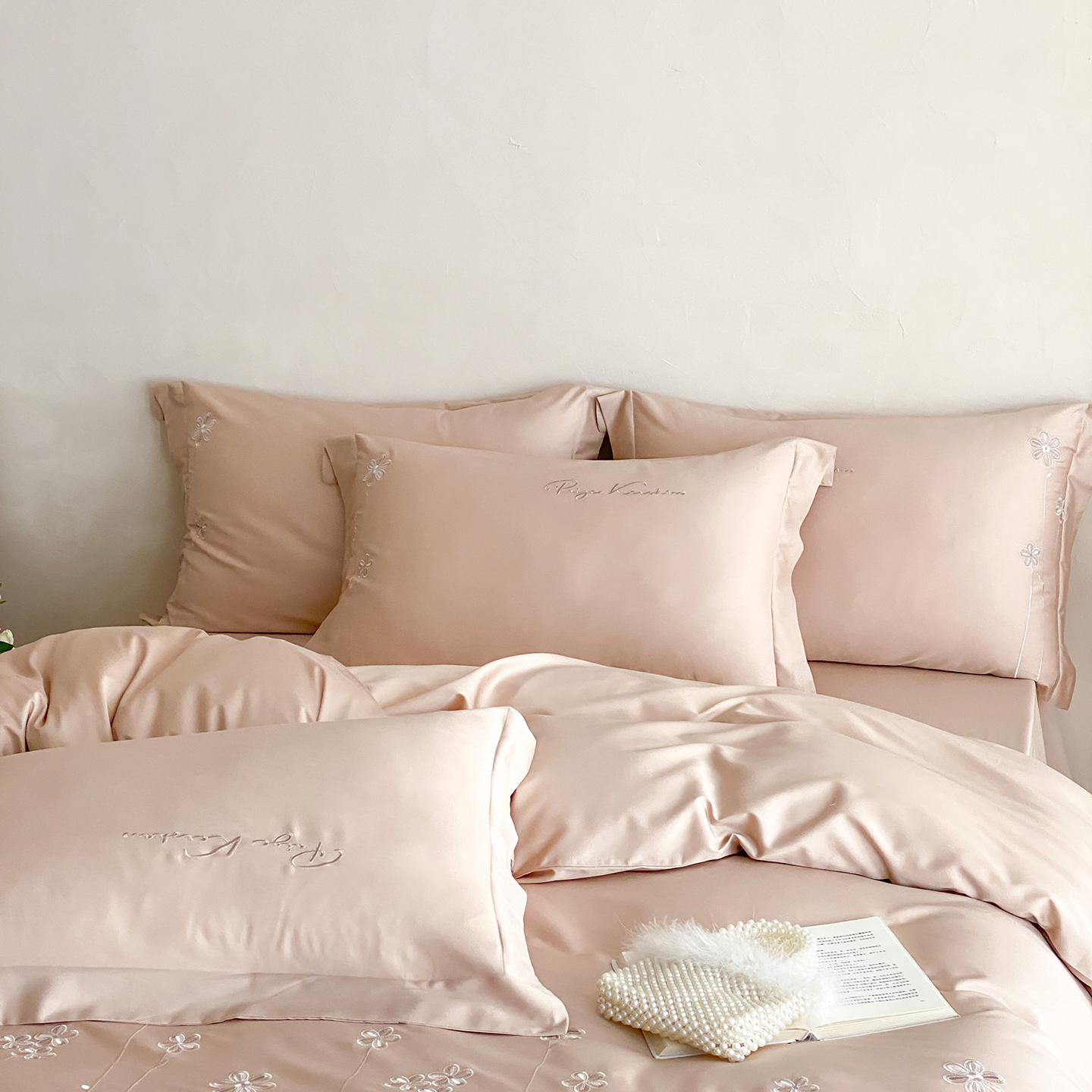 (总)曼布缇 2026新款长绒棉四件套-青春记忆(会员-20,券后308起),青春记忆-浅粉,青春记忆-香槟咖