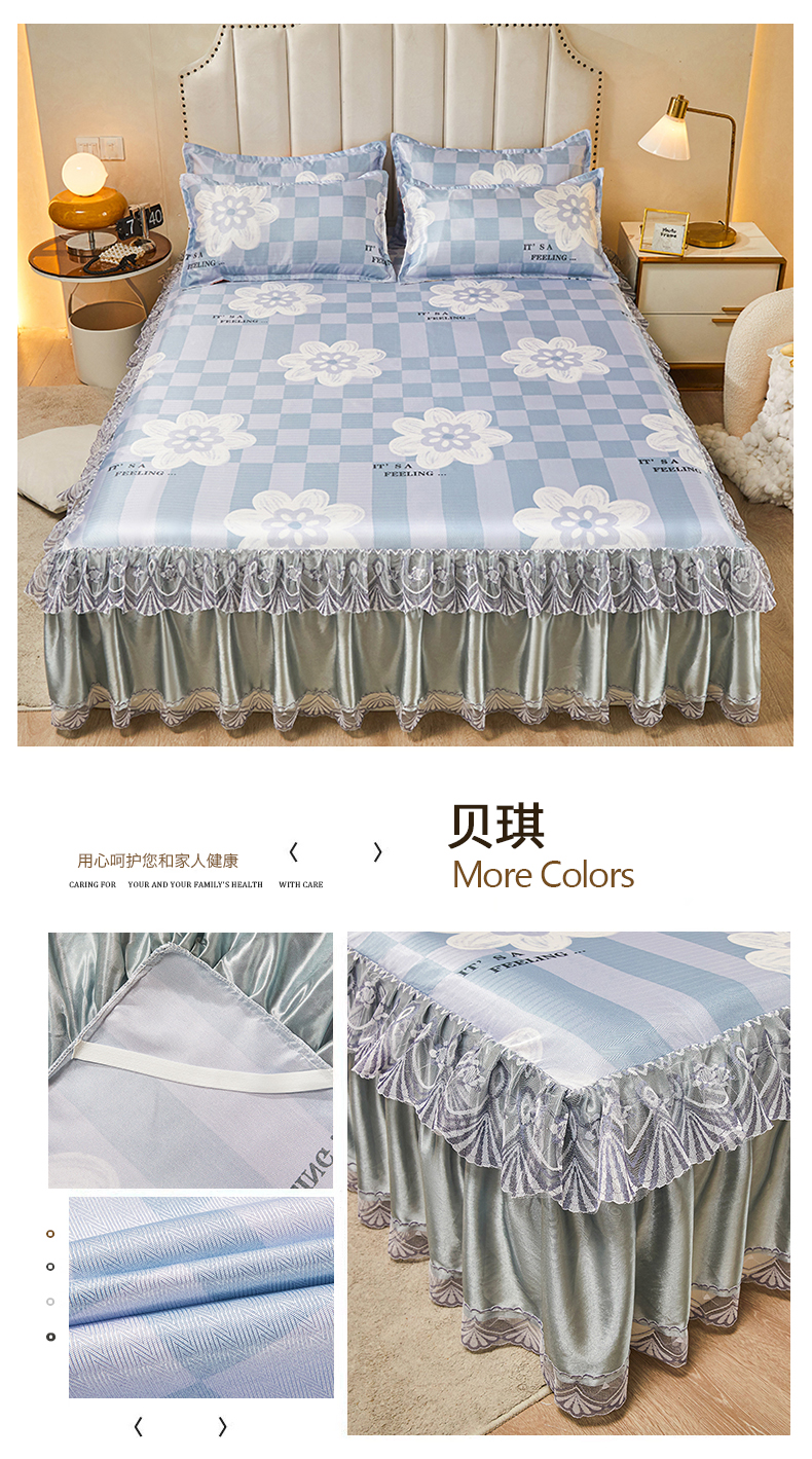 (总)妖妖家纺 2026新款双层蕾丝床裙夏凉冰丝席,满园粉,暴力熊蓝,贝琪,锦绣风尚蓝,拉布布蓝,满园蓝,欧丽雅,欧式风情,软萌熊宝,水果派对,似水流年咖,心动粉,烟雨灰,烟雨绿