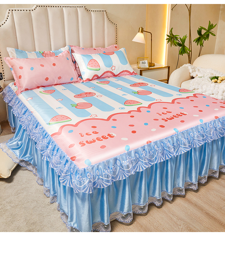 妖妖家纺 2026新款双层蕾丝床裙夏凉冰丝席 水果派对