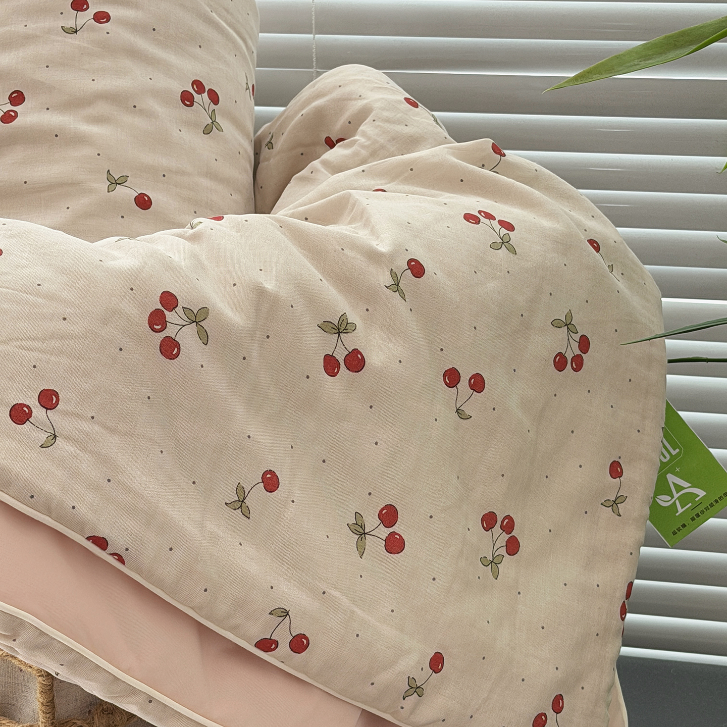 • 91家纺网 家纺一手货源 找家纺 (总)佰织鑫家居 2026新款全棉双层纱床盖款锦氨夏被四件套,车厘子,初夏,可可樱桃,浅夏,青禾,晚香