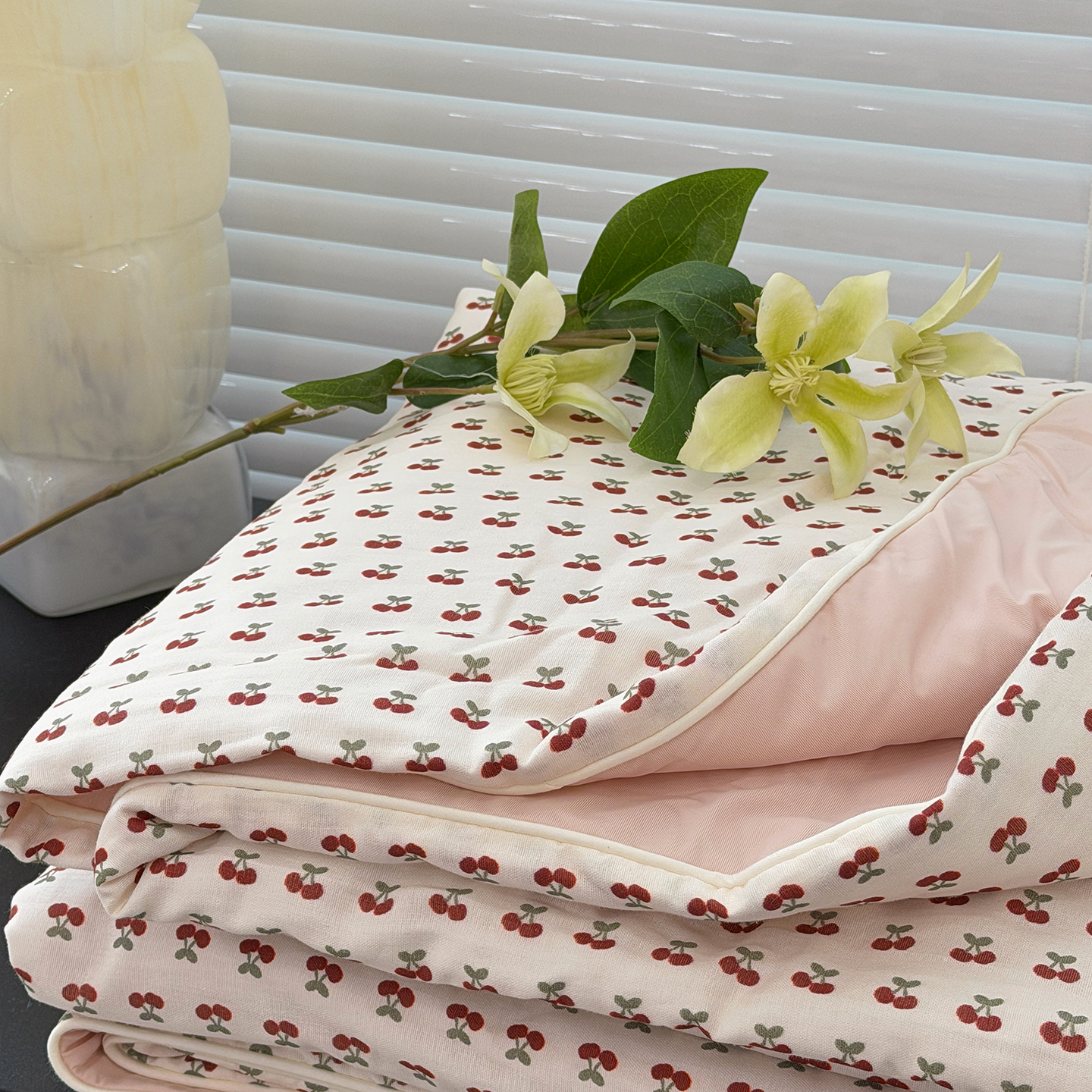 • 91家纺网 家纺一手货源 找家纺 (总)佰织鑫家居 2026新款全棉双层纱锦氨凉感夏凉被空调被,车厘子,初夏,可可樱桃,浅夏,青禾,晚香