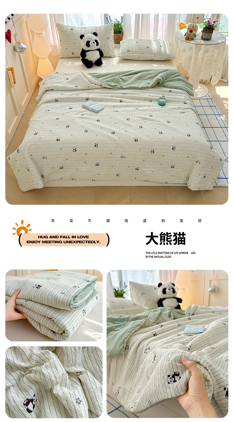 商品名称:晚爱家纺(原晚安家居) 2026新款泡芙棉夏被双层纱泡泡纱空调被小清新夏凉被 大熊猫