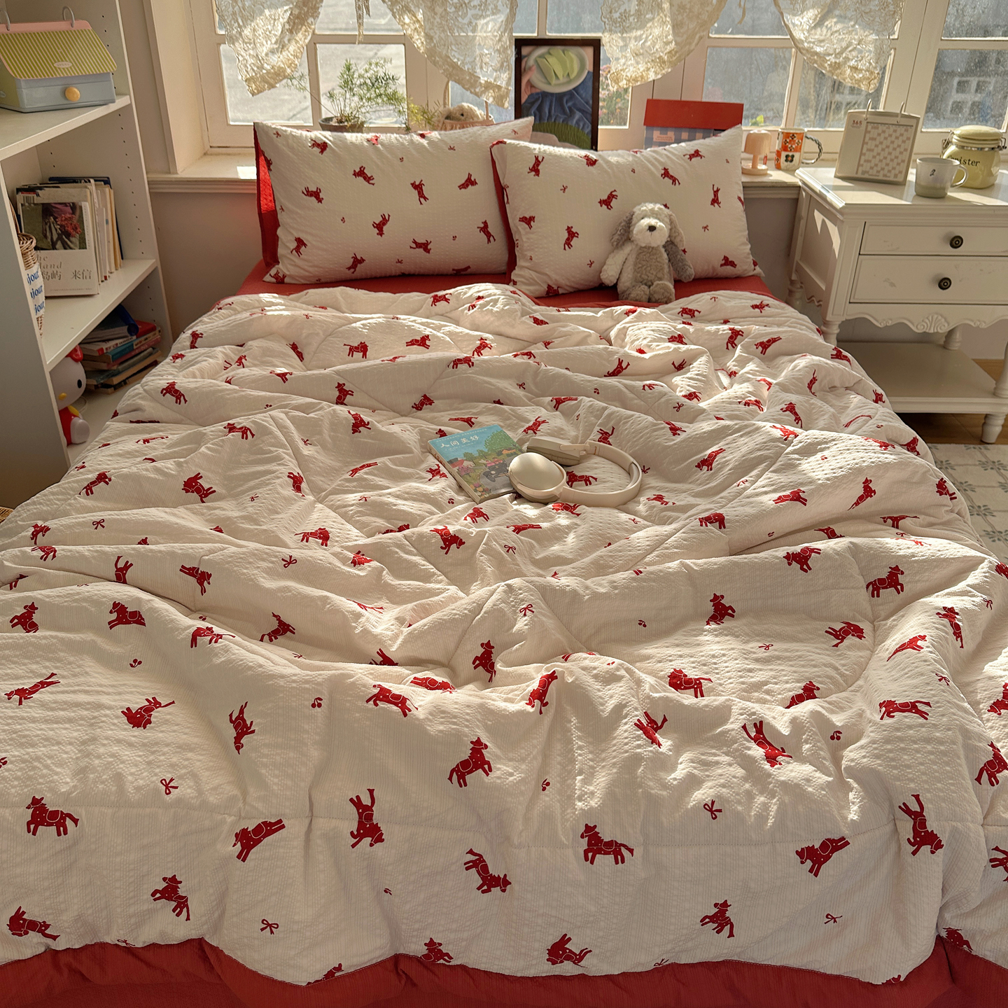 • 91家纺网 家纺一手货源 找家纺 梵克保罗 2026新款10A抗菌泡芙棉夏被被子被芯 泡芙棉-红缨踏马