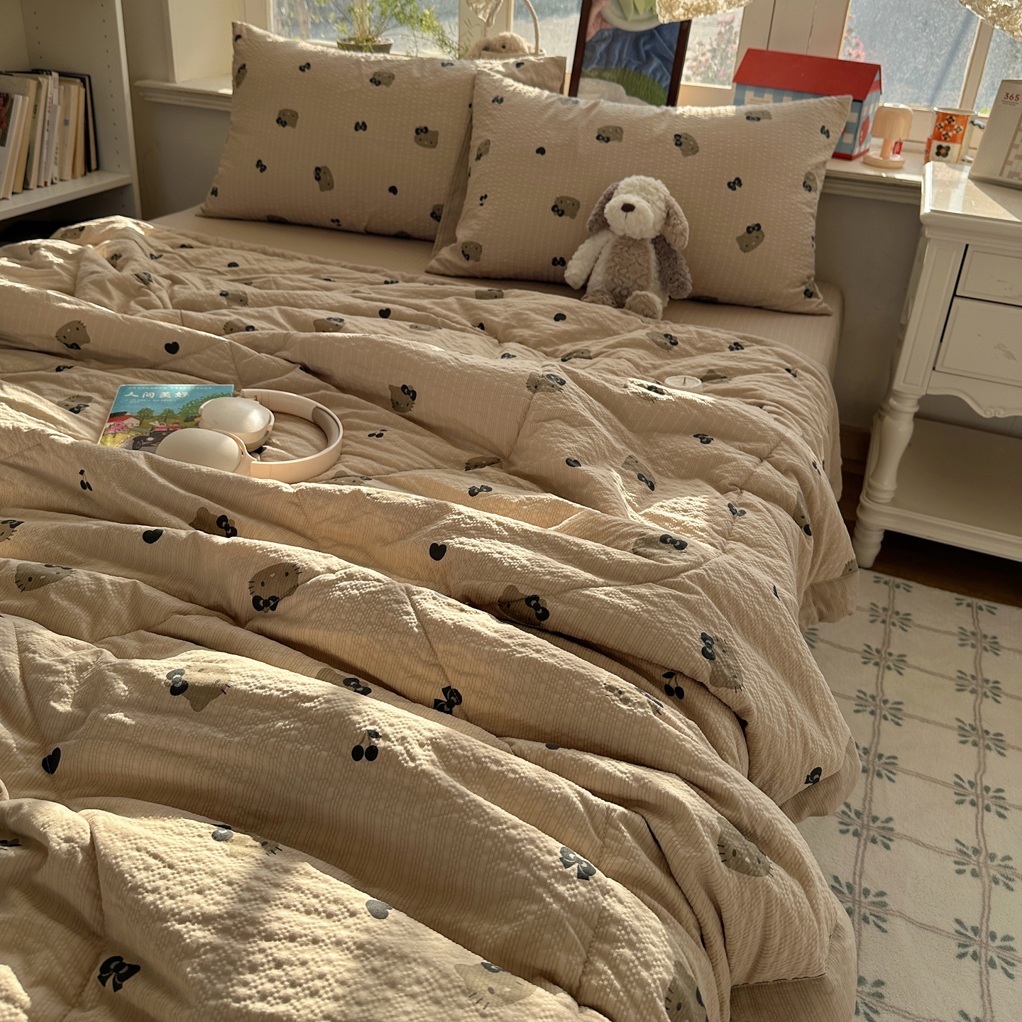 • 91家纺网 家纺一手货源 找家纺 (总)梵克保罗 2026春夏新款10A抗菌毛球花边皱皱纱夏被单夏被空调被夏被四件套,花乡小熊,蓝星狗,乐趣,萌兔花园,沐春,素锦纹,雾格马