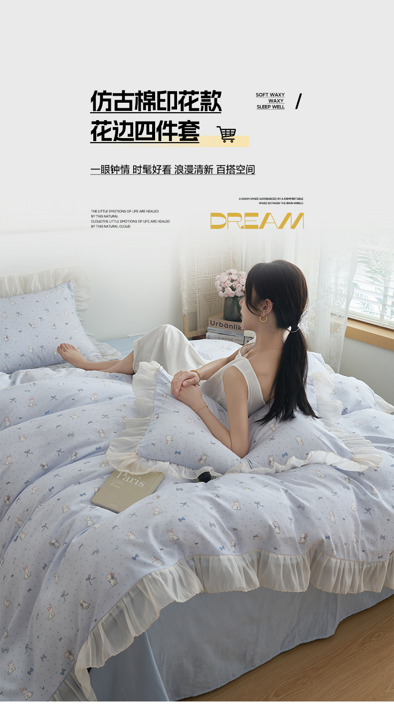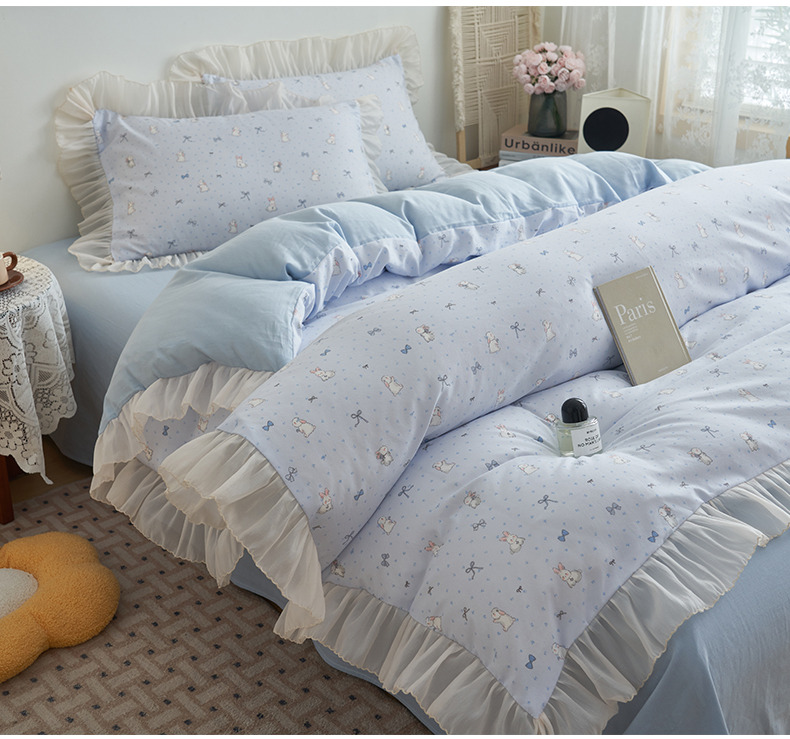 当前位置: 91家纺网 > 商品网购 > 床品套件 > 四件套 > 其它四件套 > 晨曦家纺 2026春夏新款雪花皱纱花边小碎花小清新少女风四件套 甜心兔粉