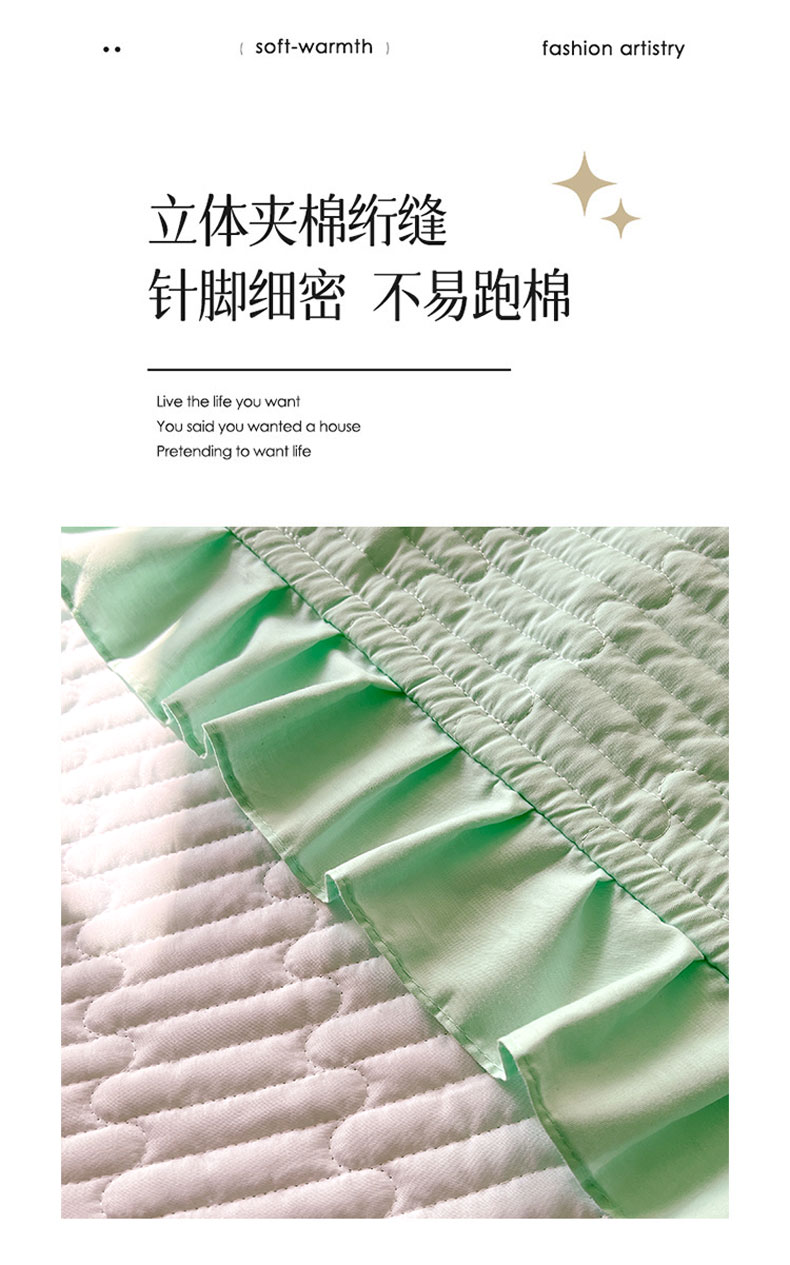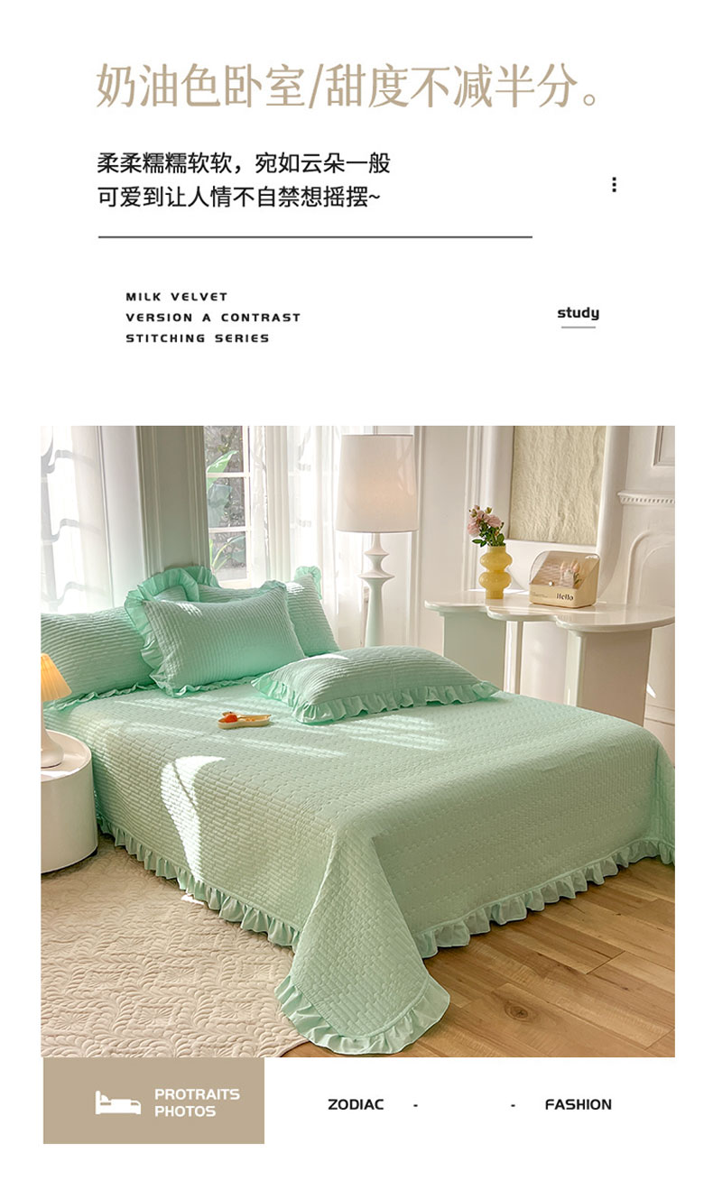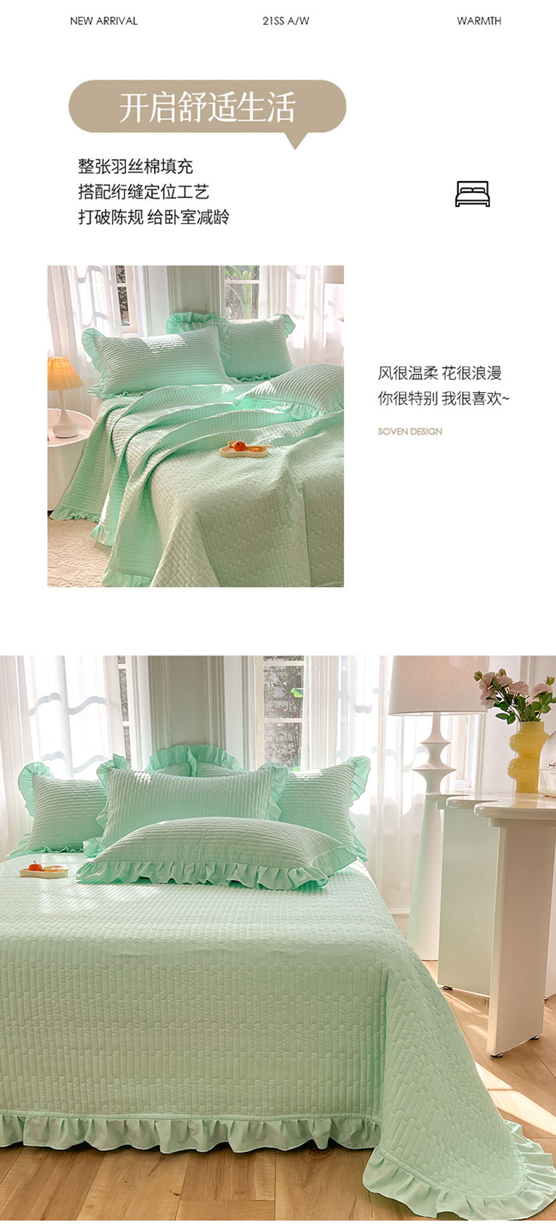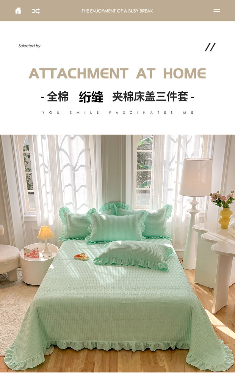 • 91家纺网 家纺一手货源 找家纺 (总)花香四季家纺 2026新款13376全棉夹棉床盖三件套13372纯棉纯色床盖花边公主风(可定制任意尺寸)