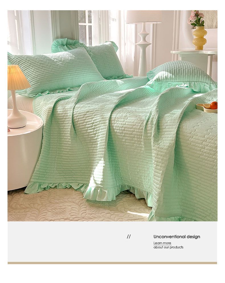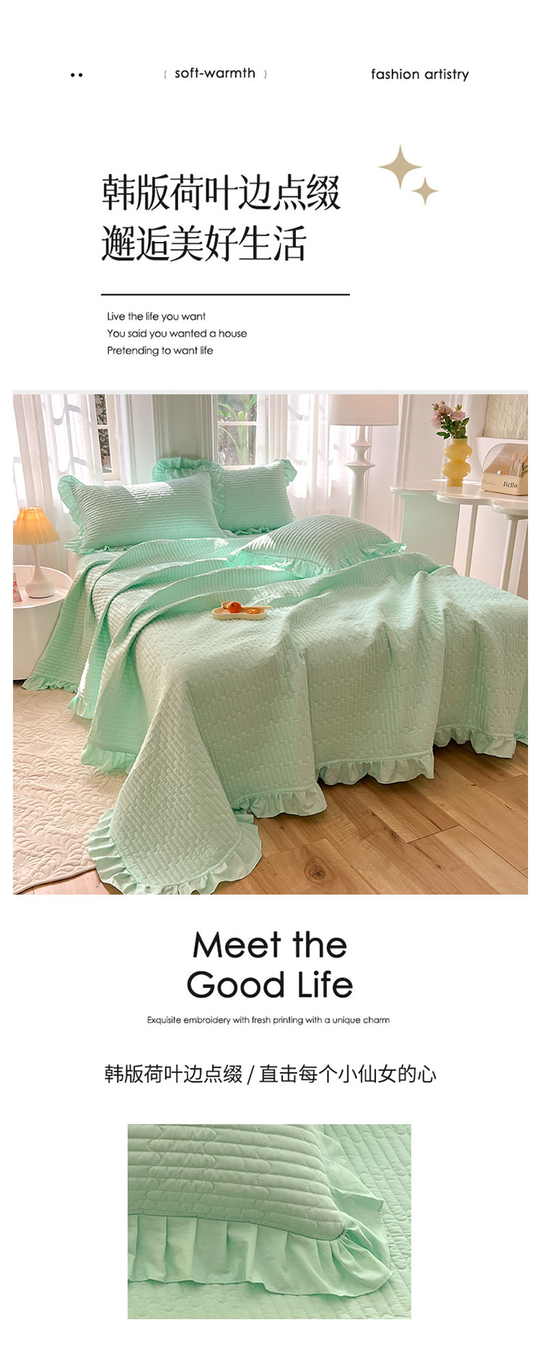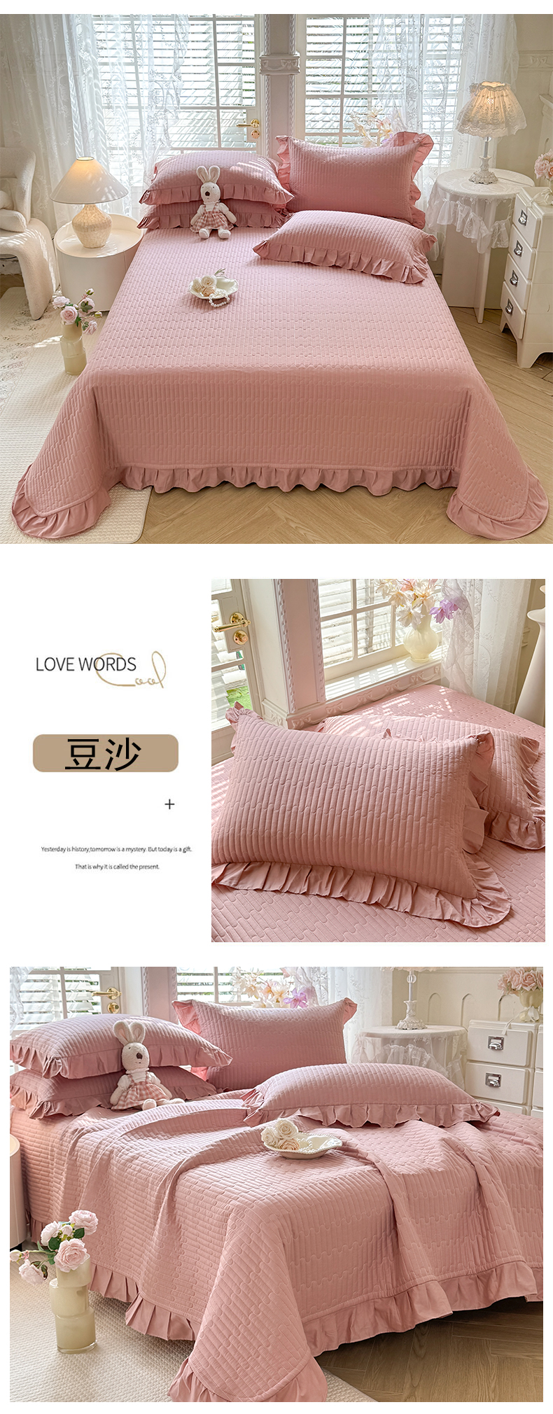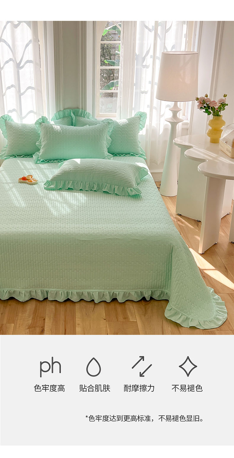 (总)花香四季家纺 2026新款13376全棉夹棉床盖三件套13372纯棉纯色床盖花边公主风(可定制任意尺寸)