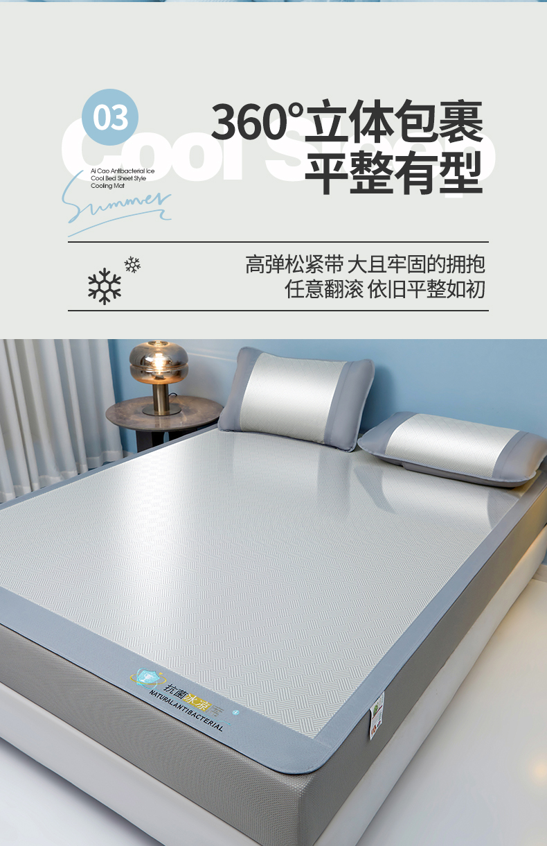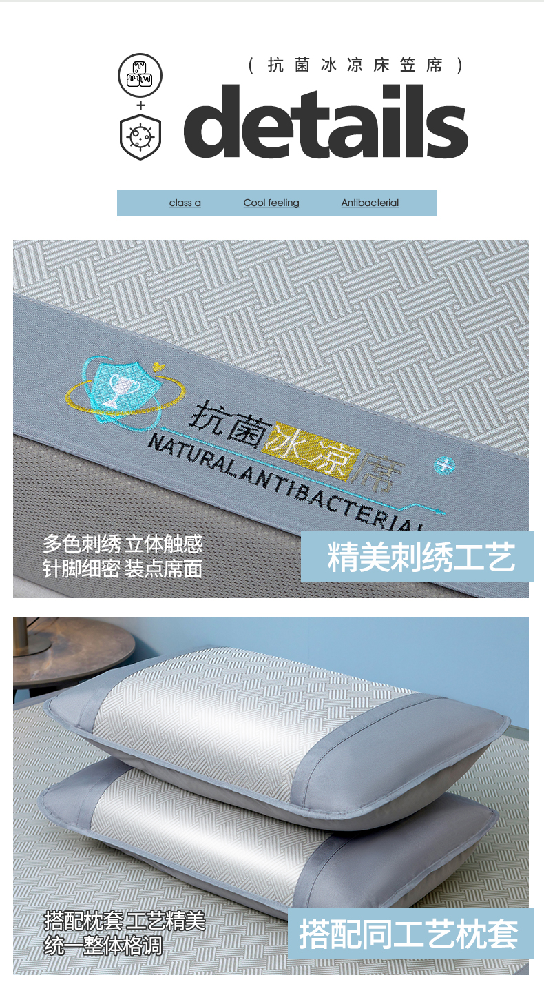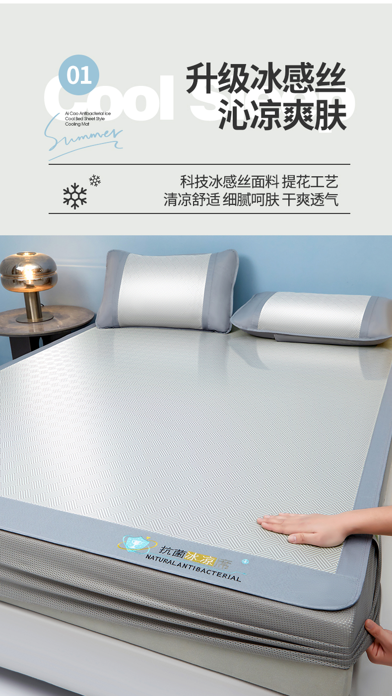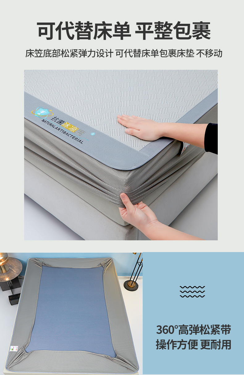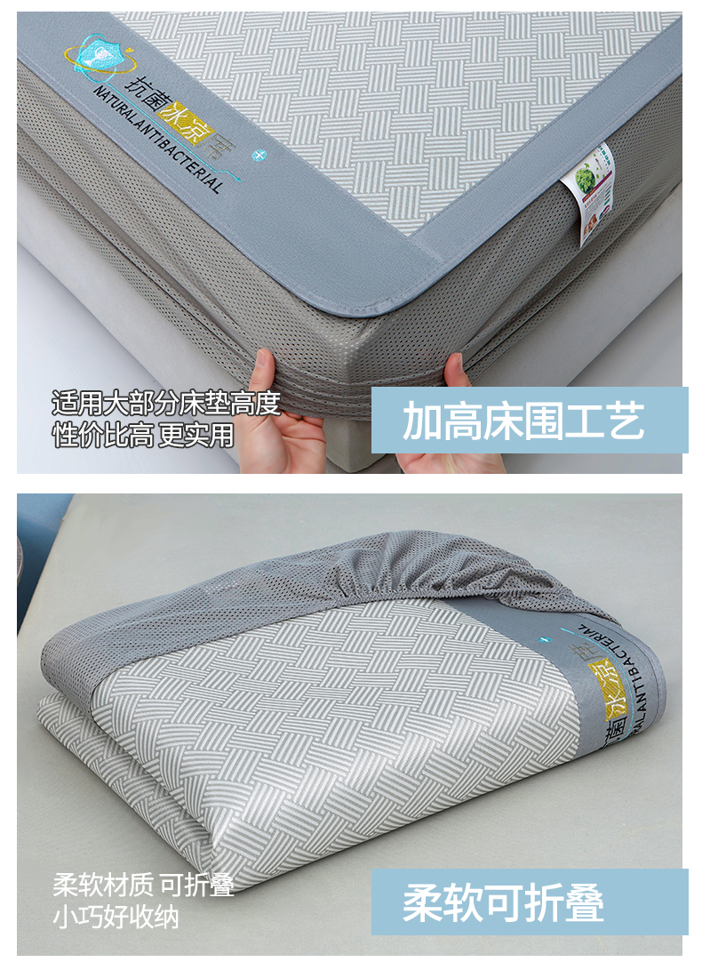 • 91家纺网 家纺一手货源 找家纺 航途席业 2026新款抗菌三明治冰凉席床席床笠-思绪 思绪 绅士灰床笠款