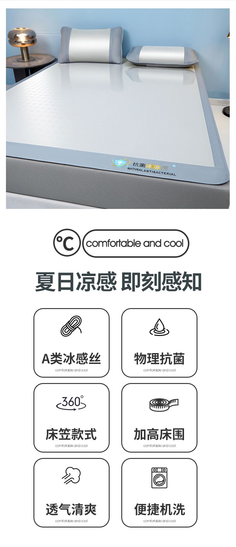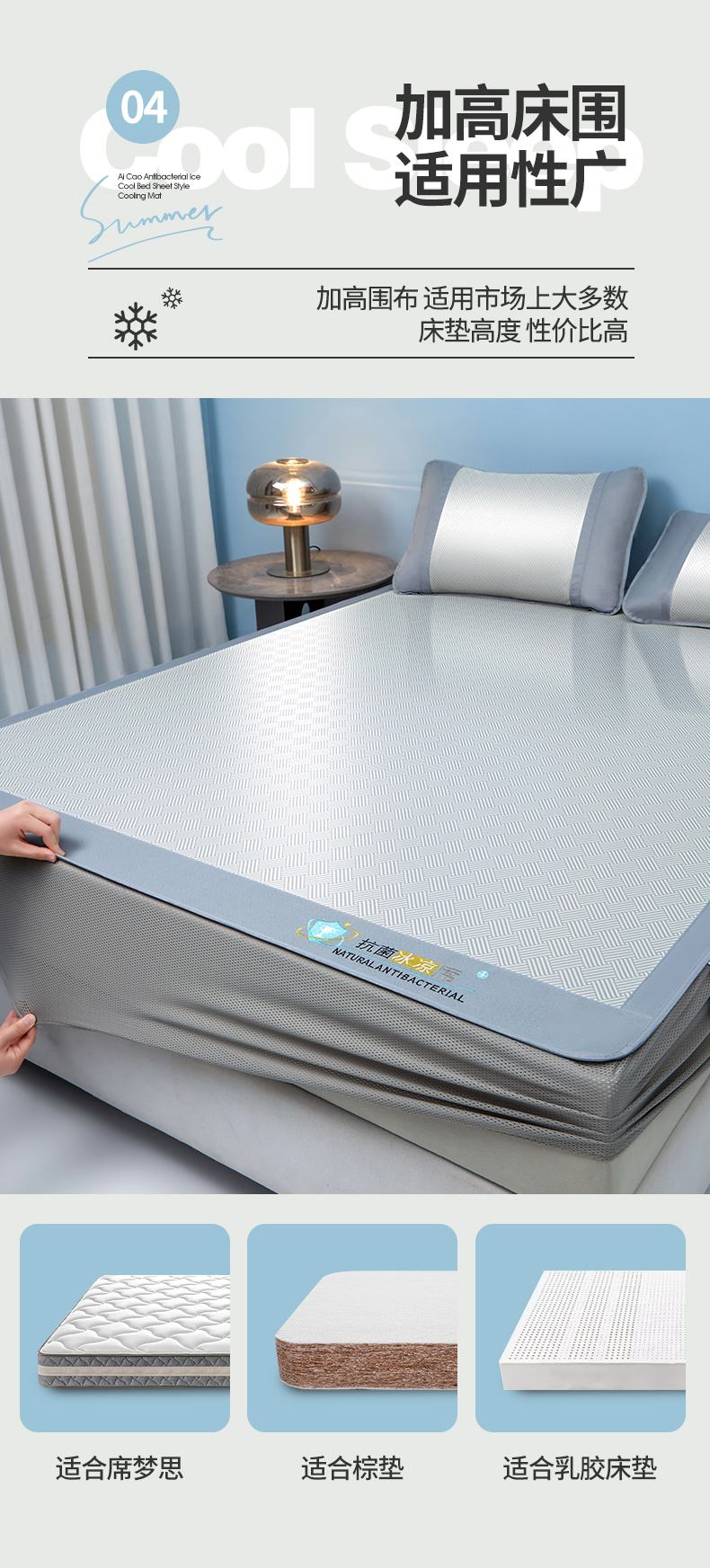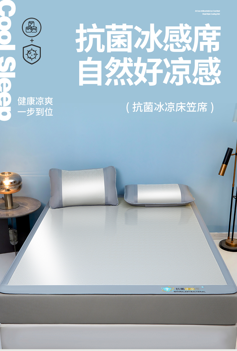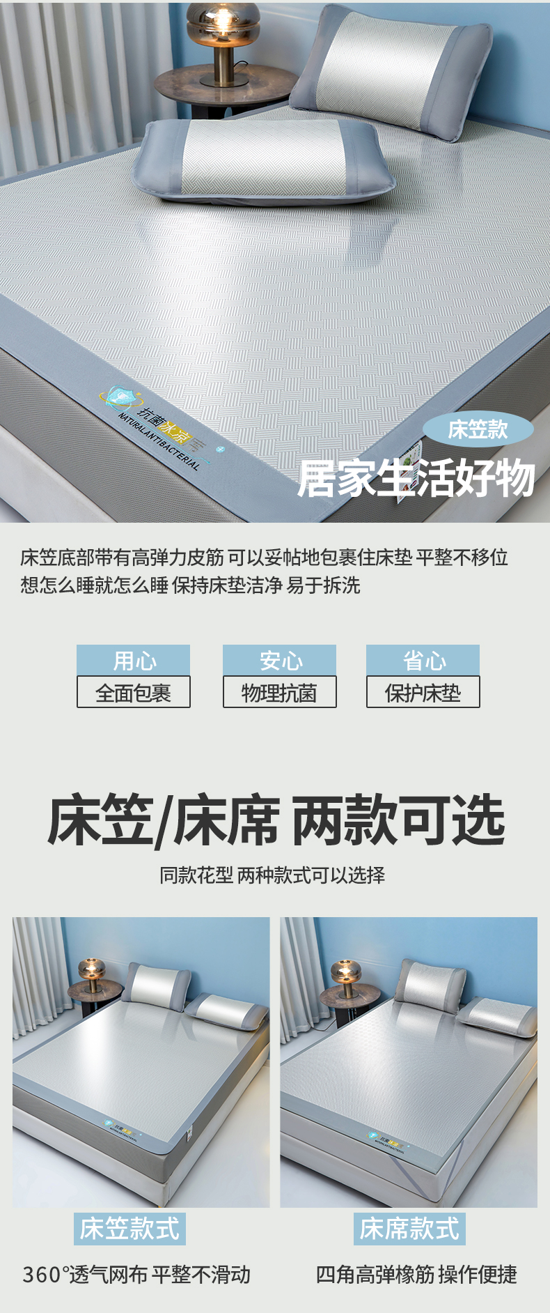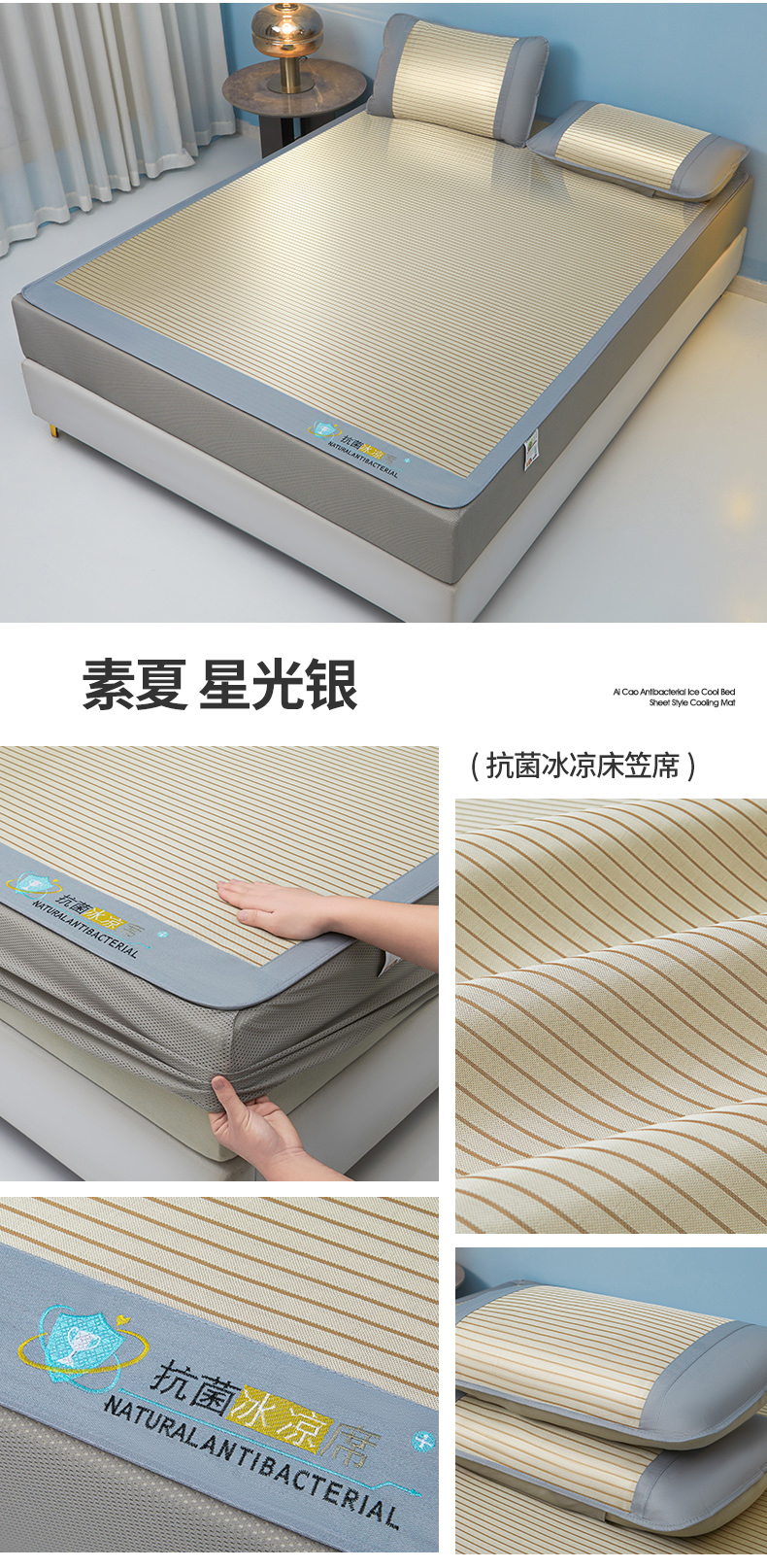 • 91家纺网 家纺一手货源 找家纺 航途席业 2026新款抗菌三明治冰凉席床席床笠-思绪 思绪 绅士灰床笠款