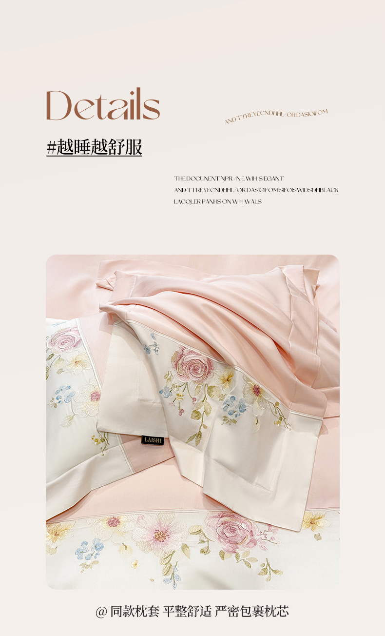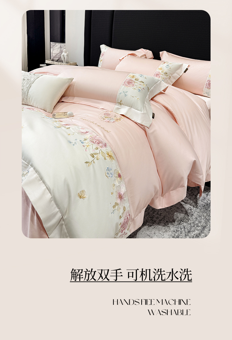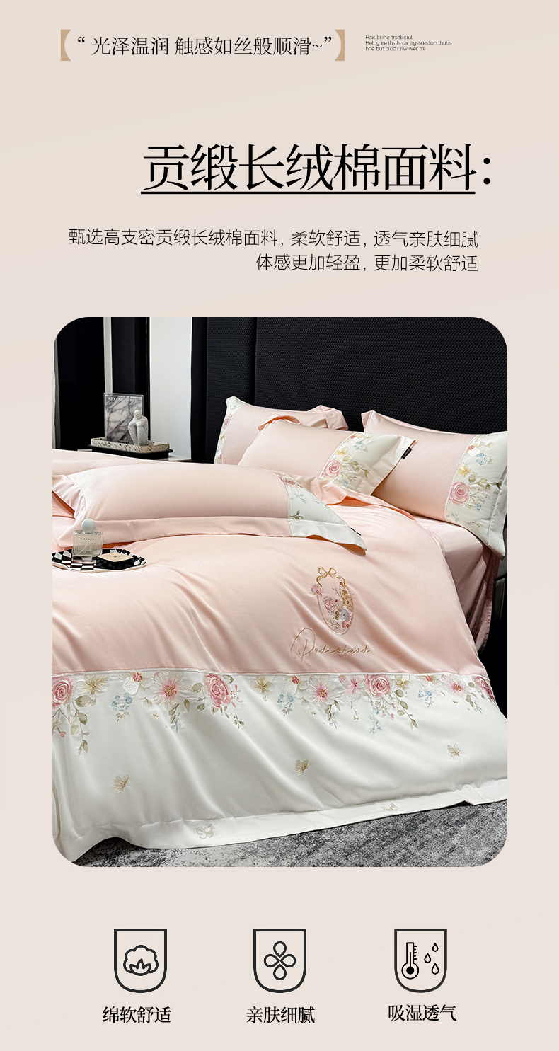 当前位置: 91家纺网 > 商品网购 > 床品套件 > 四件套 > 长绒棉四件套 > (总)莱势 2026新品100支全棉纯棉50x50s贡缎长绒棉刺绣绣花四件套高端礼盒-玫瑰少女