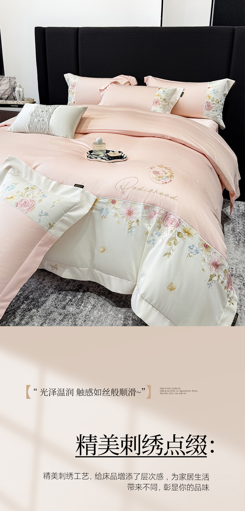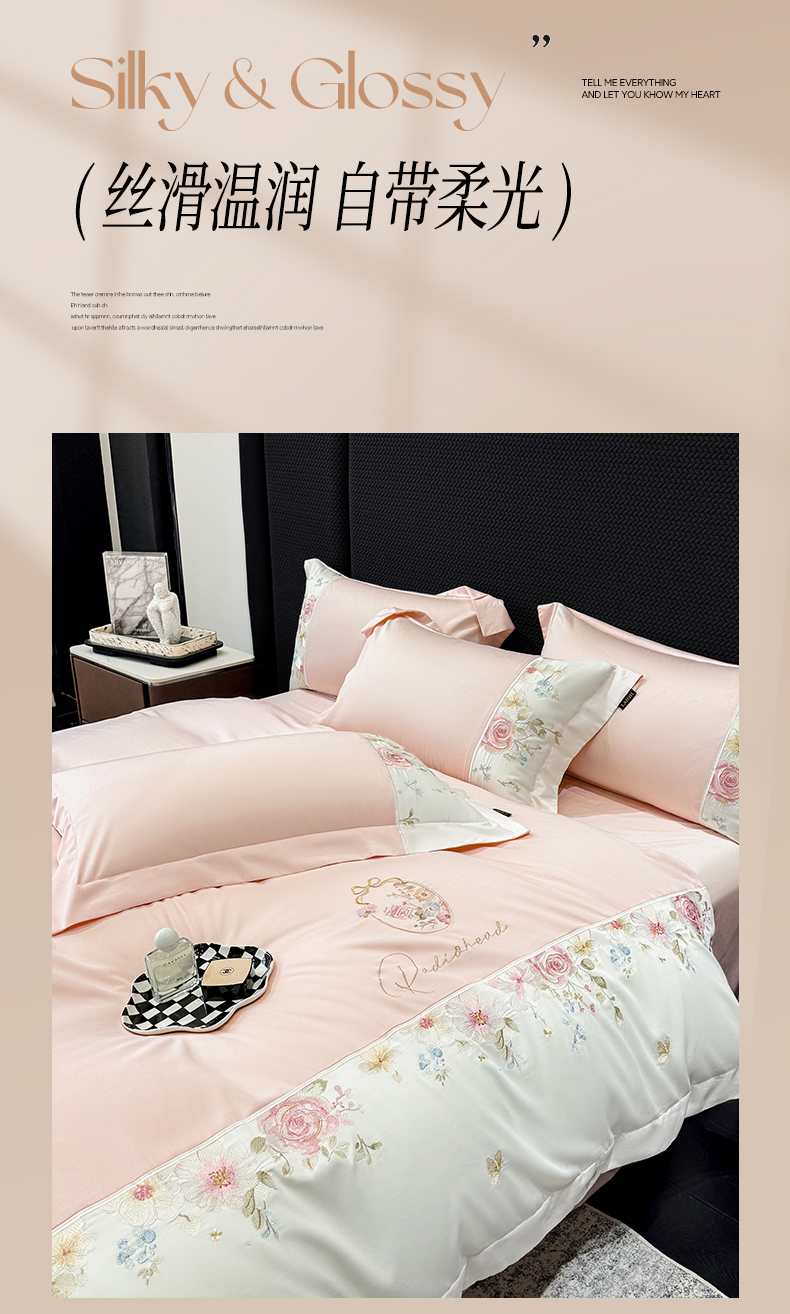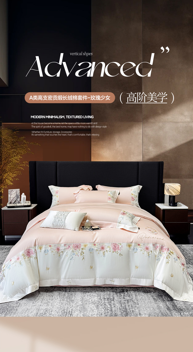 当前位置: 91家纺网 > 商品网购 > 床品套件 > 四件套 > 长绒棉四件套 > (总)莱势 2026新品100支全棉纯棉50x50s贡缎长绒棉刺绣绣花四件套高端礼盒-玫瑰少女
