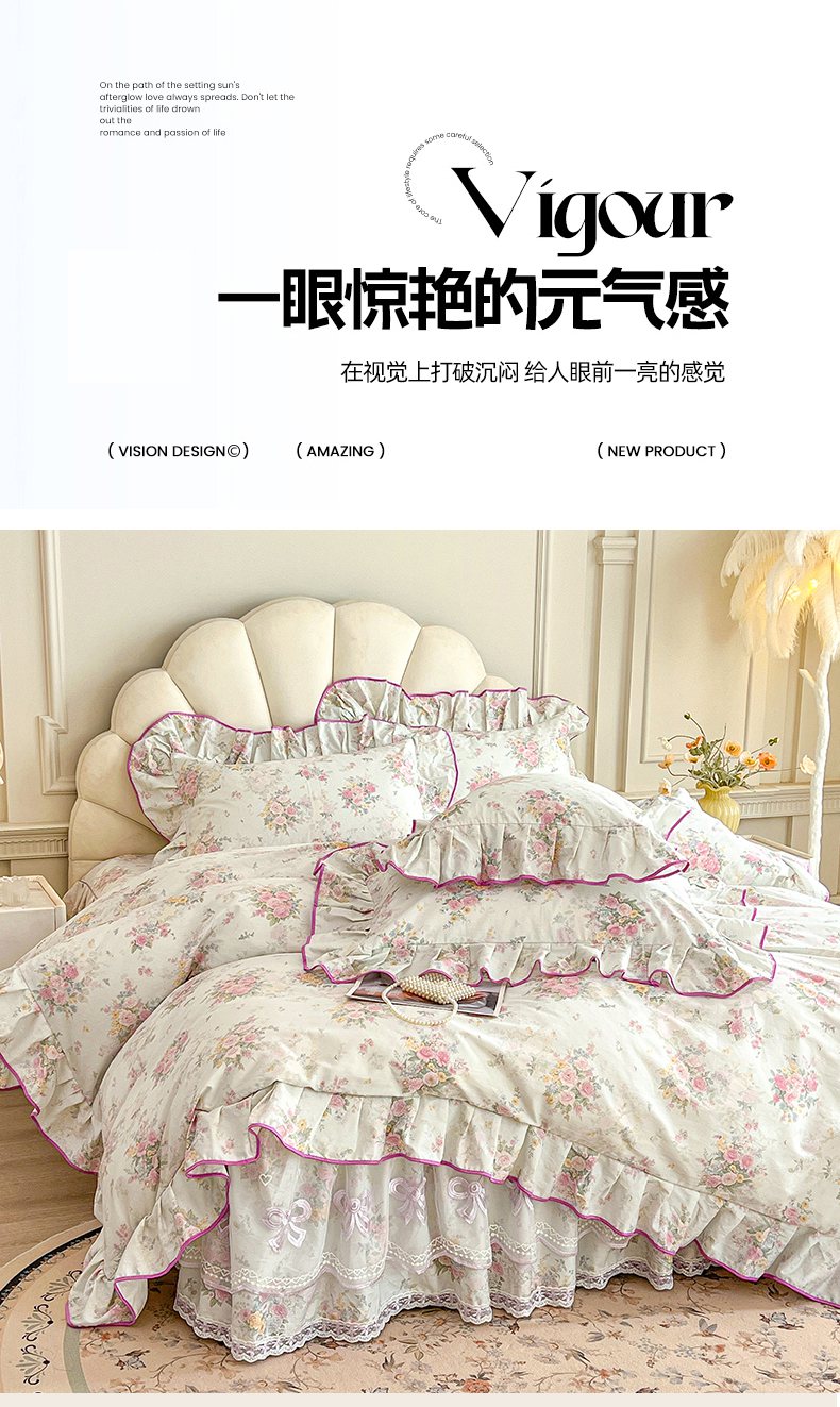 当前位置: 91家纺网 > 商品网购 > 床品套件 > 四件套 > 全棉普通四件套 > (总)宜凡家纺 2026新款全棉印花公主风单层床裙四件套